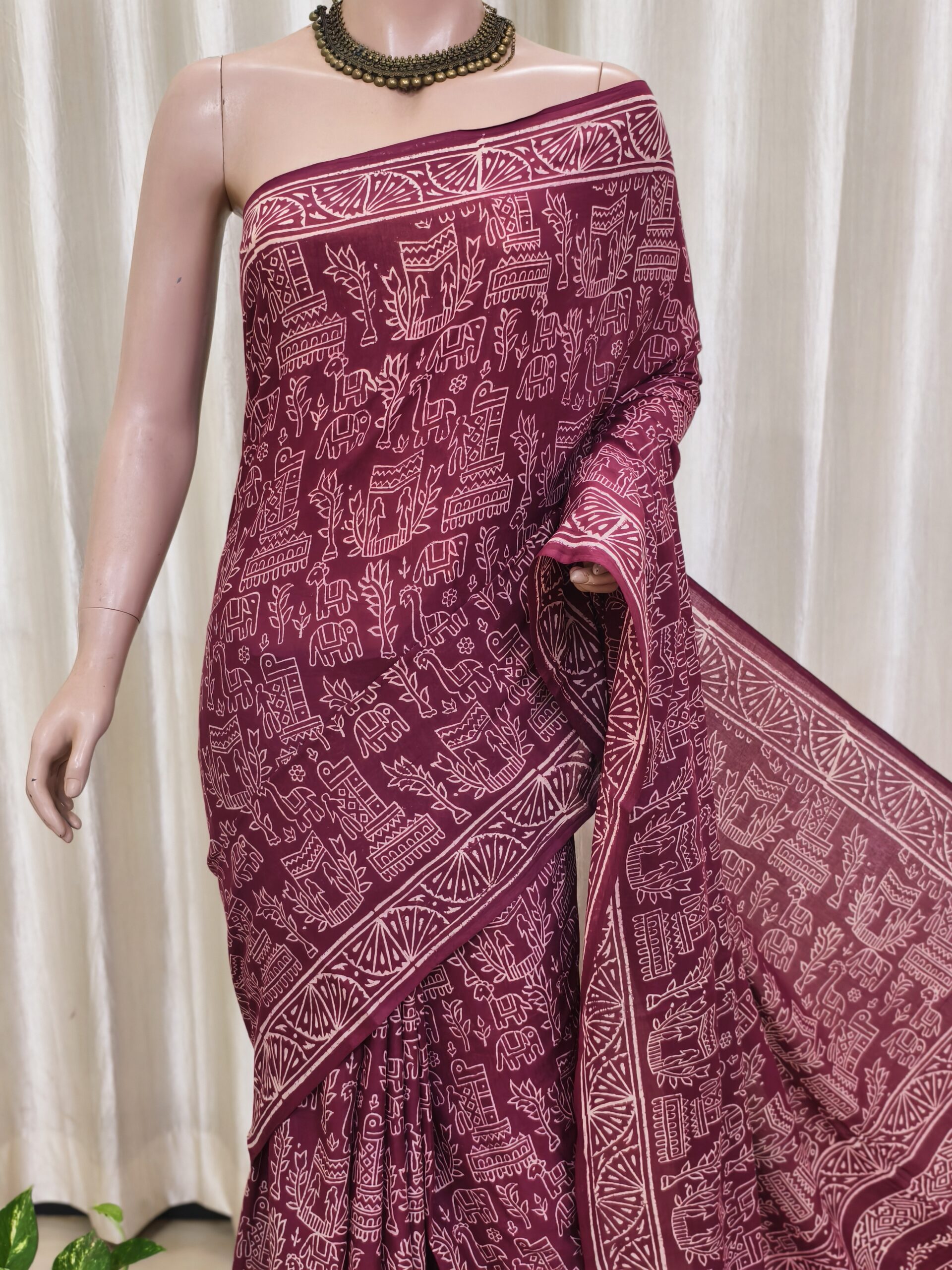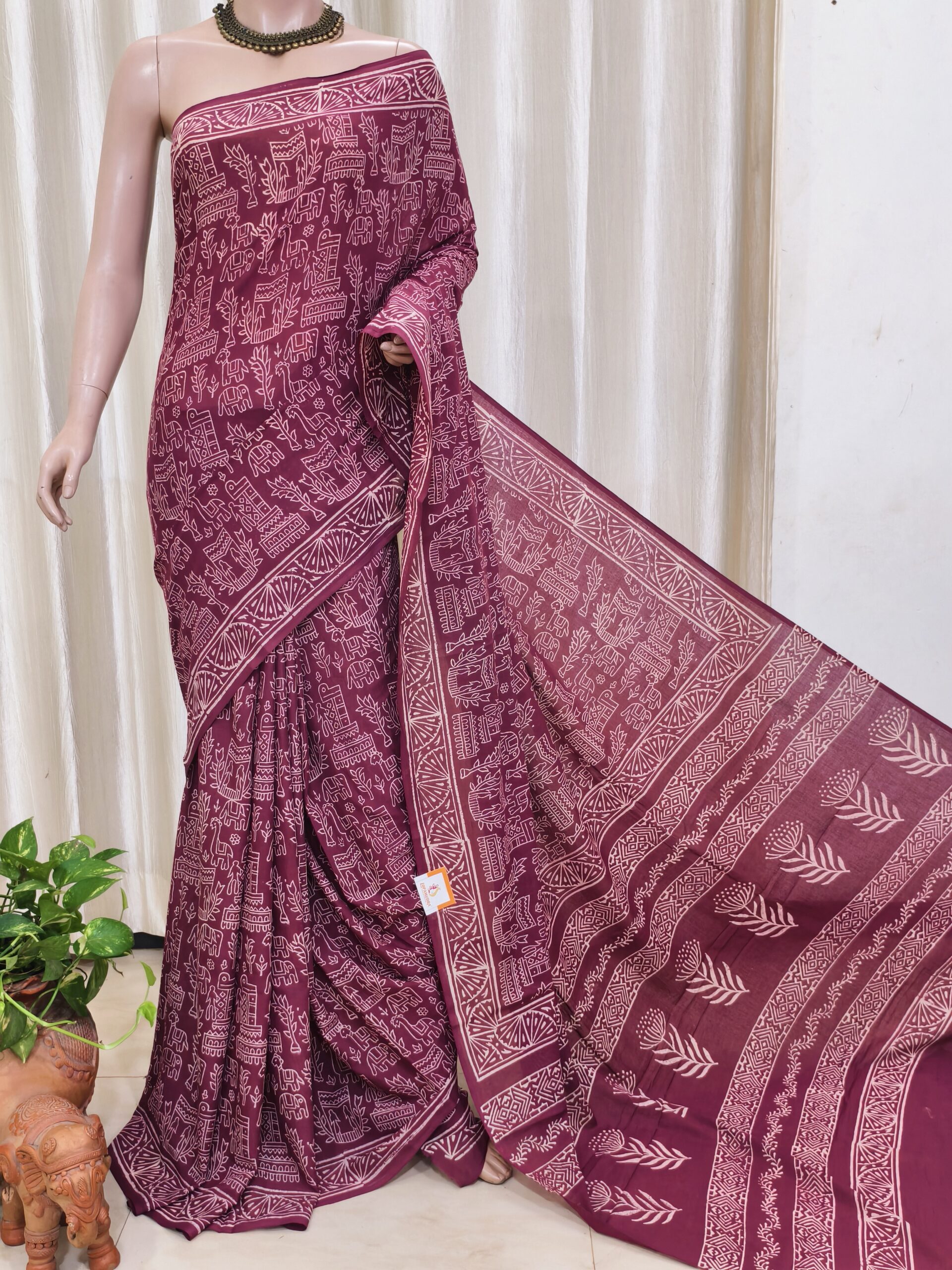 A Handblock prints Bagru Cotton Saree with Blouse Piece.