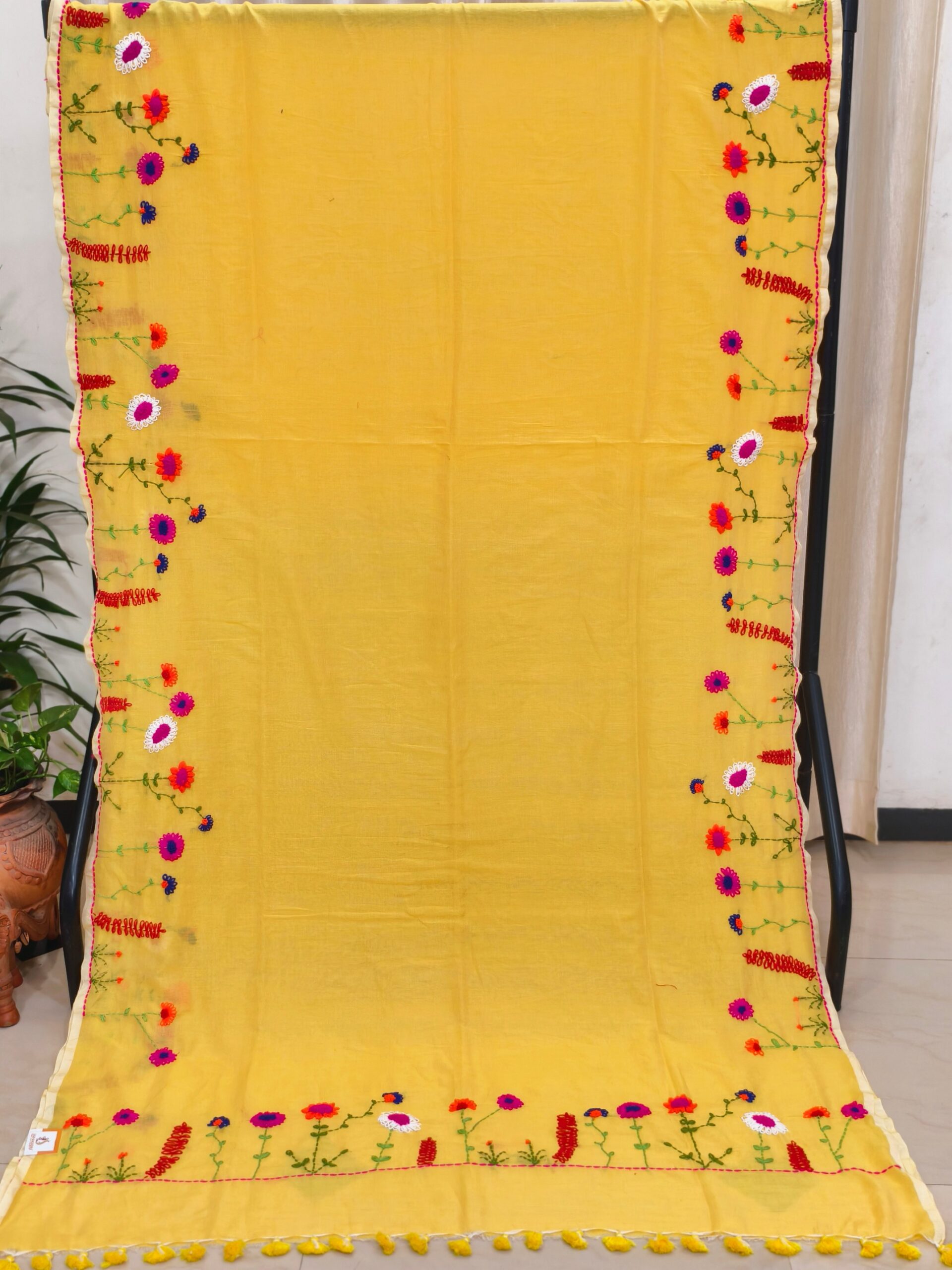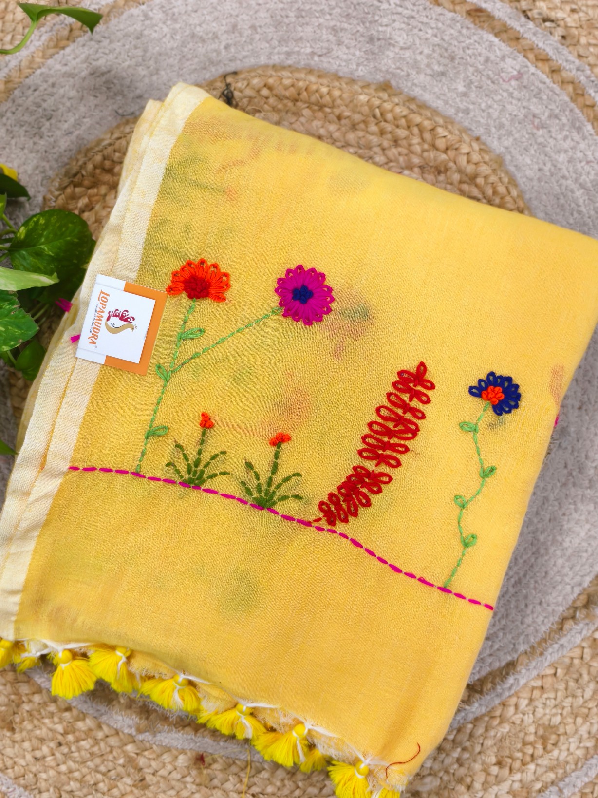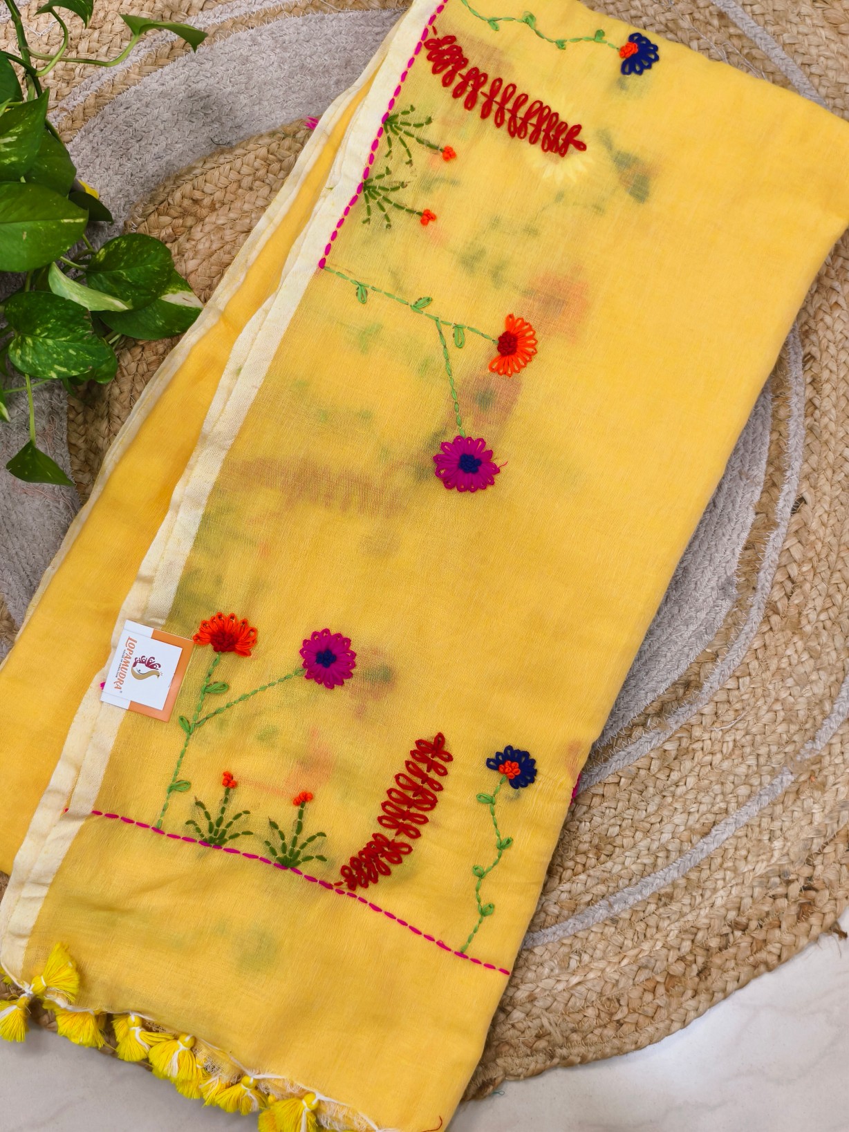 Presenting very beautiful Cotton Hand Embroidery Saree.  This saree is with blouse piece.
