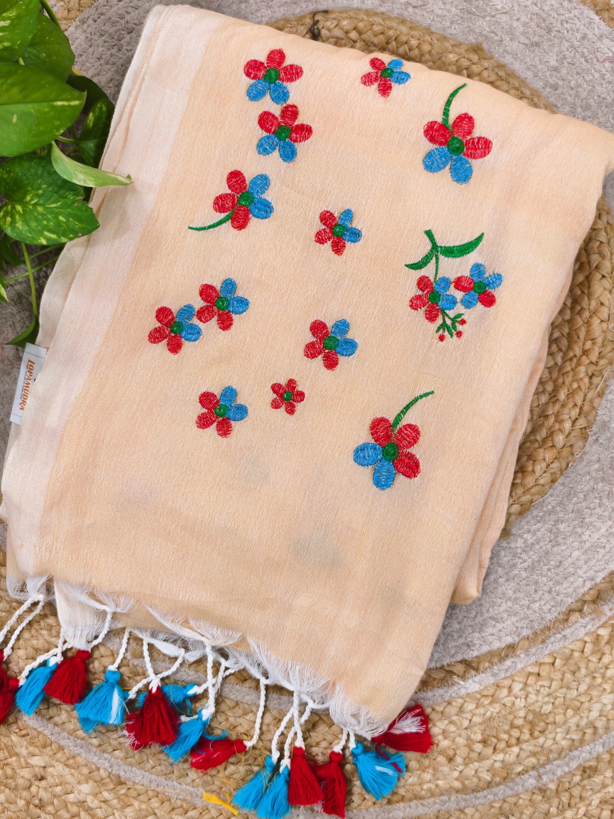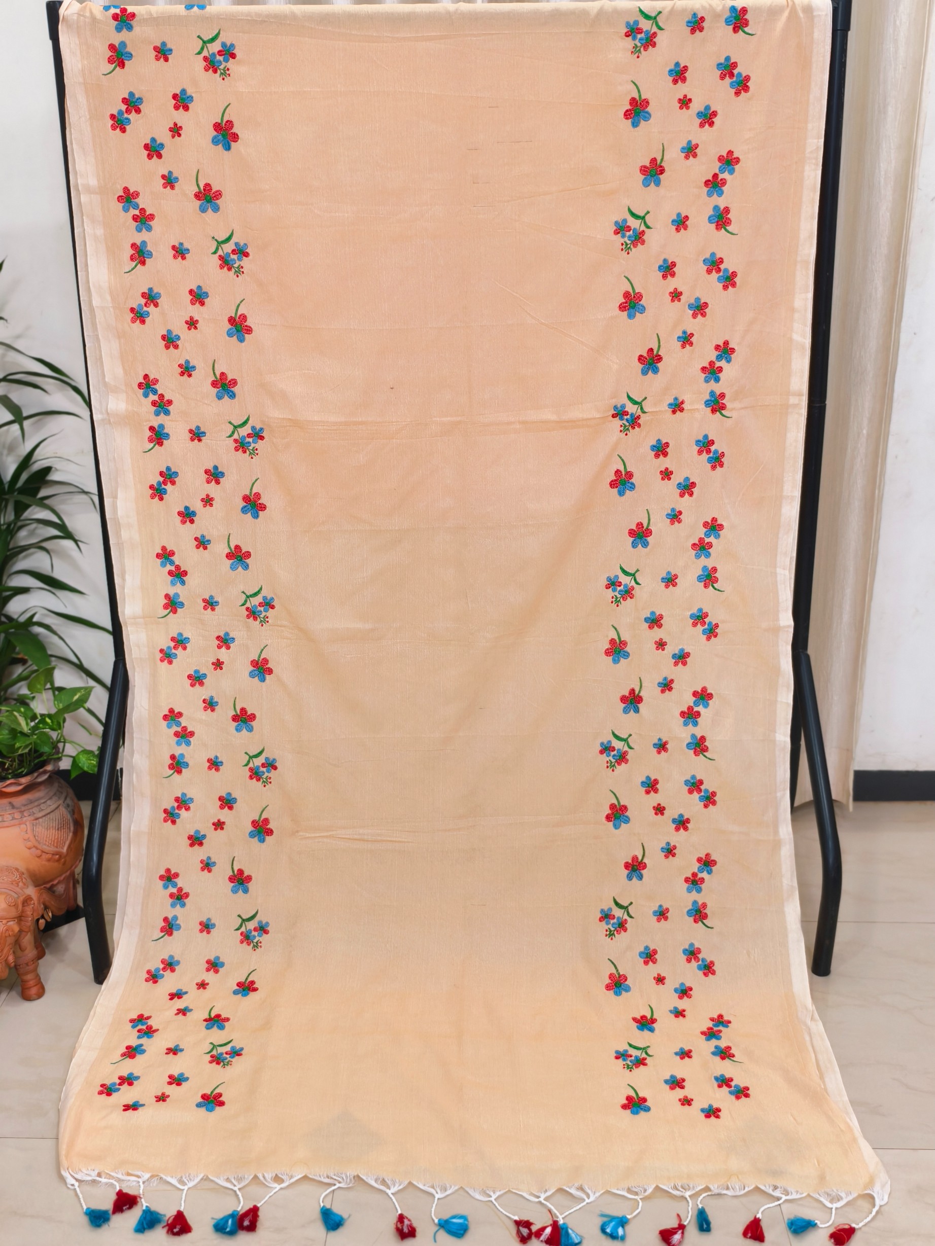 Presenting very beautiful Cotton Hand Embroidery Saree.  This saree is with blouse piece.