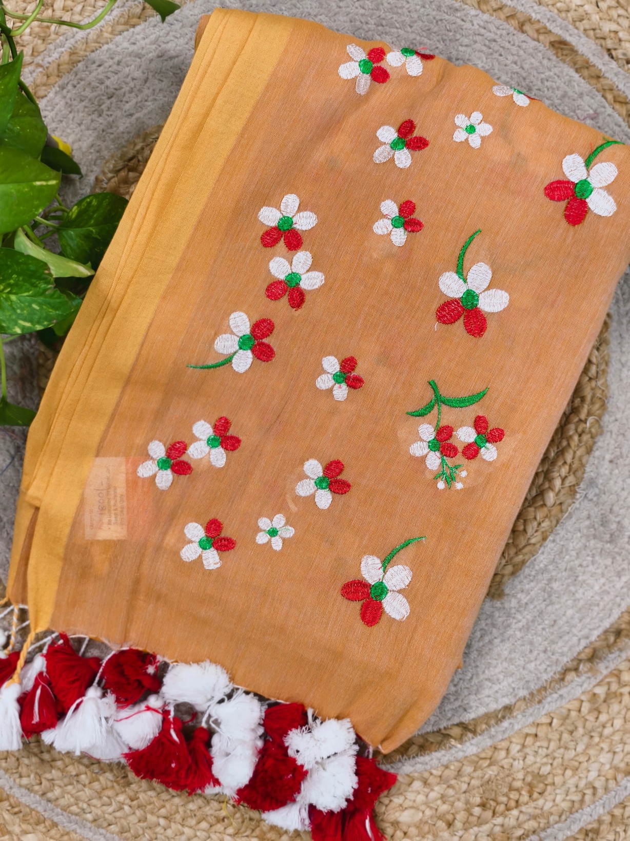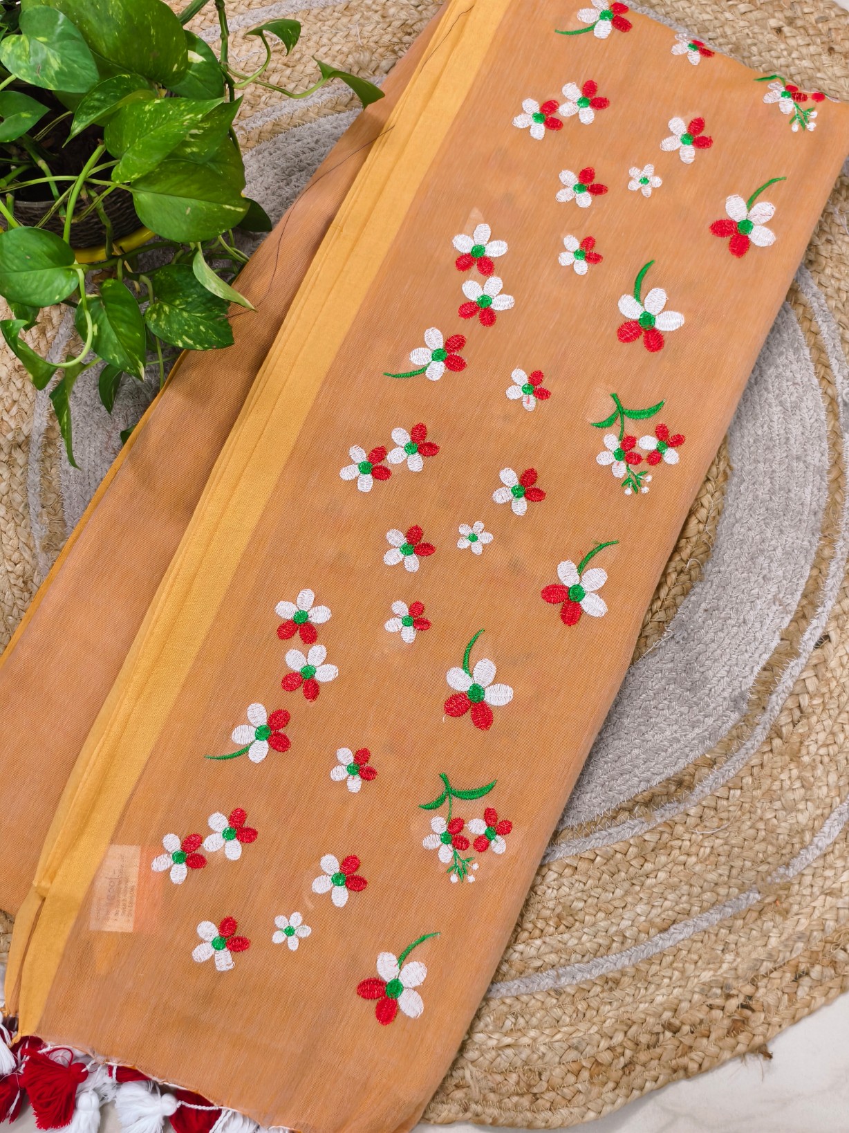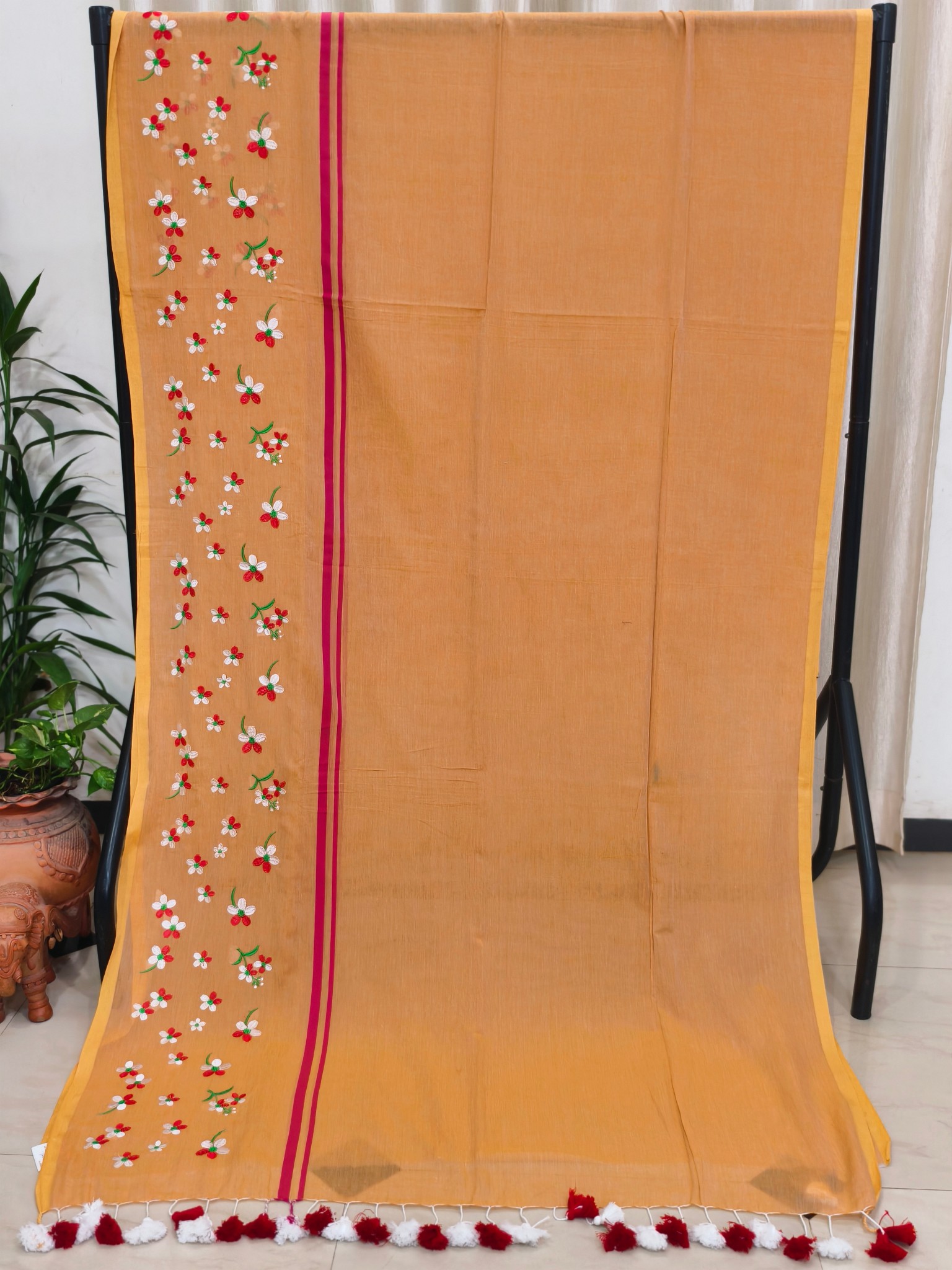 Presenting very beautiful Cotton Hand Embroidery Saree.  This saree is with blouse piece.