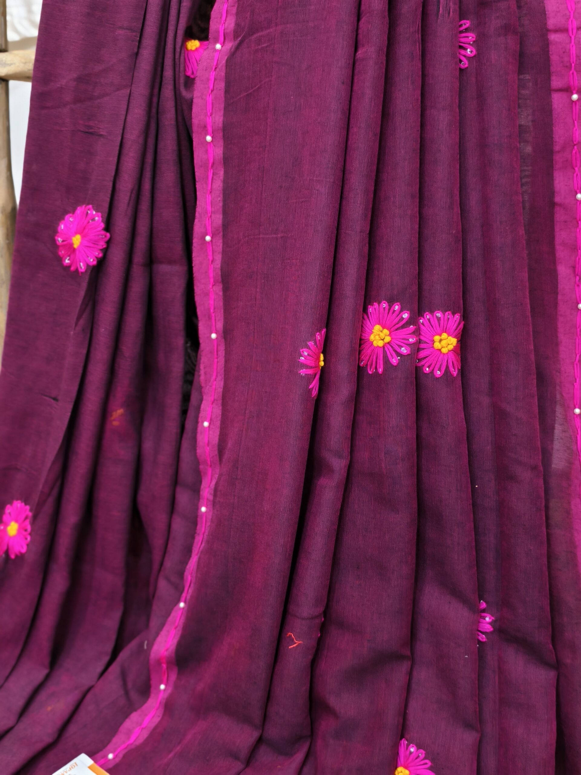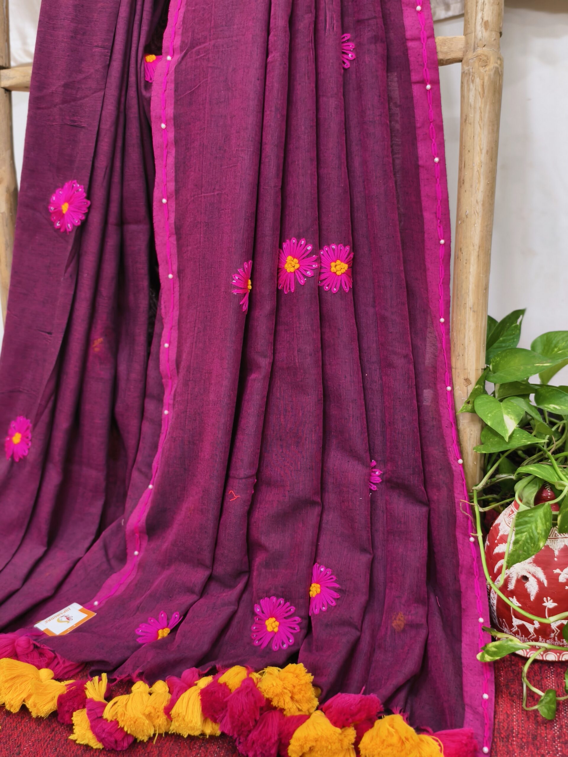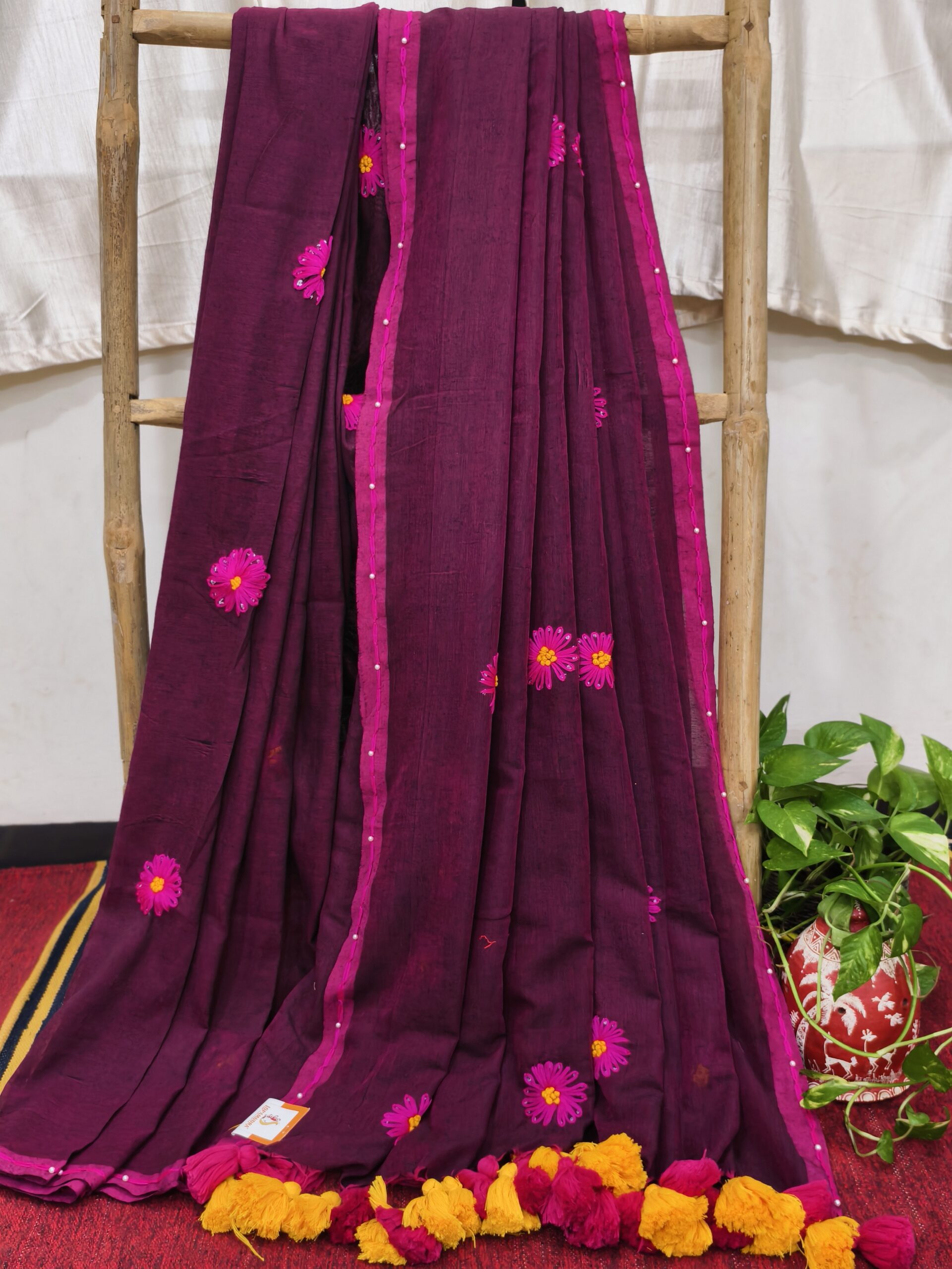Presenting very beautiful Cotton Hand Embroidery Saree.  This saree is with blouse piece.