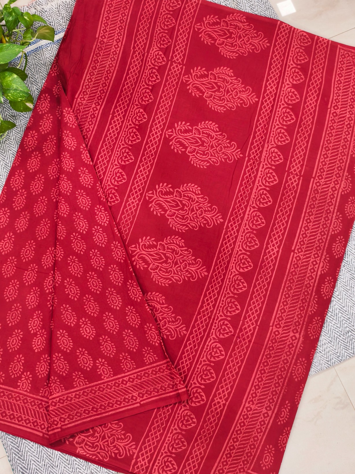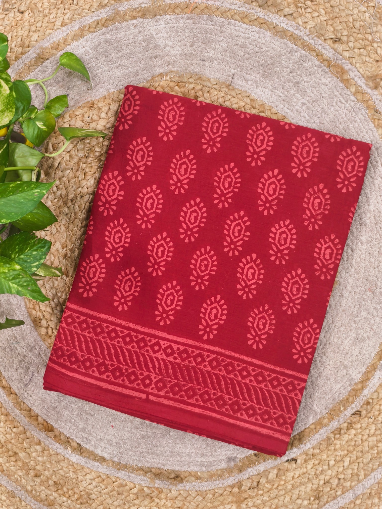 A Handblock prints Bagru Cotton Saree with Blouse Piece.