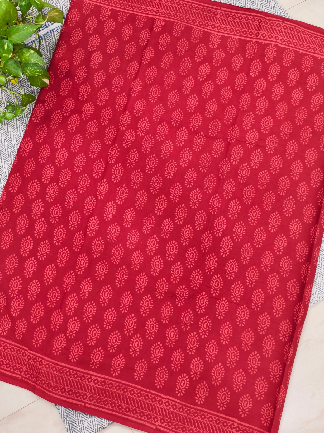 Note : this is Handblock printed product. The process consists of various manual works by artisans. There might be slight irregularities in the motifs, colors & prints. These are not defects but the real sign of handcrafted product.