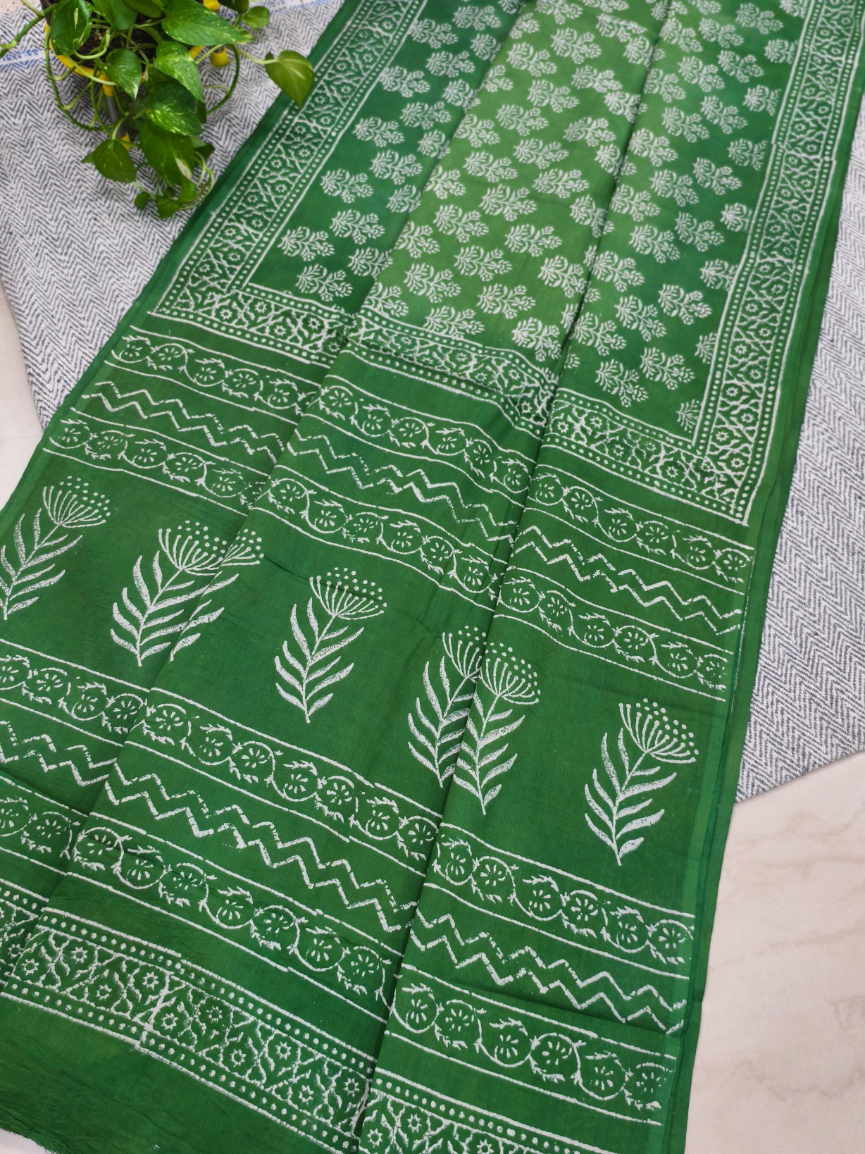 A Handblock prints Bagru Cotton Saree with Blouse Piece.