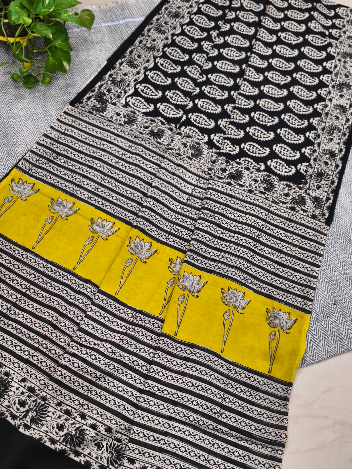 Note : this is Handblock printed product. The process consists of various manual works by artisans. There might be slight irregularities in the motifs, colors & prints. These are not defects but the real sign of handcrafted product.