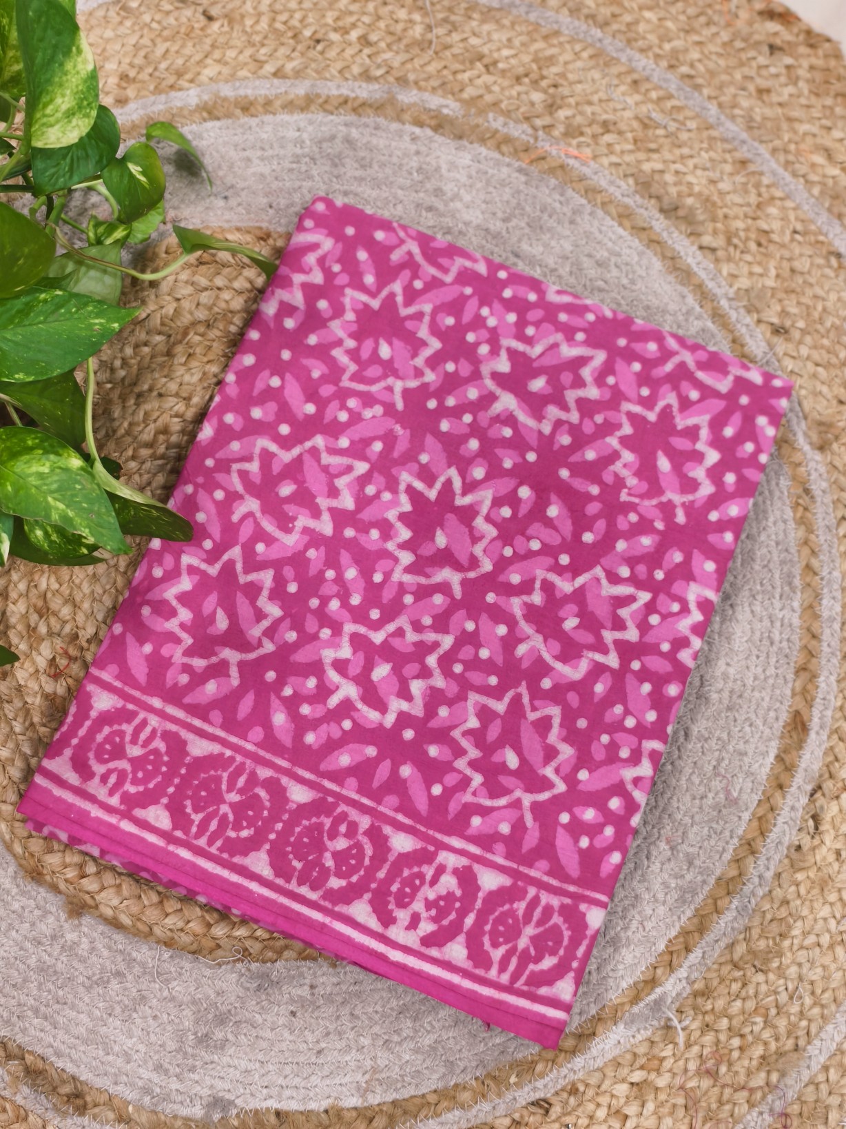 A Handblock prints Bagru Cotton Saree with Blouse Piece.