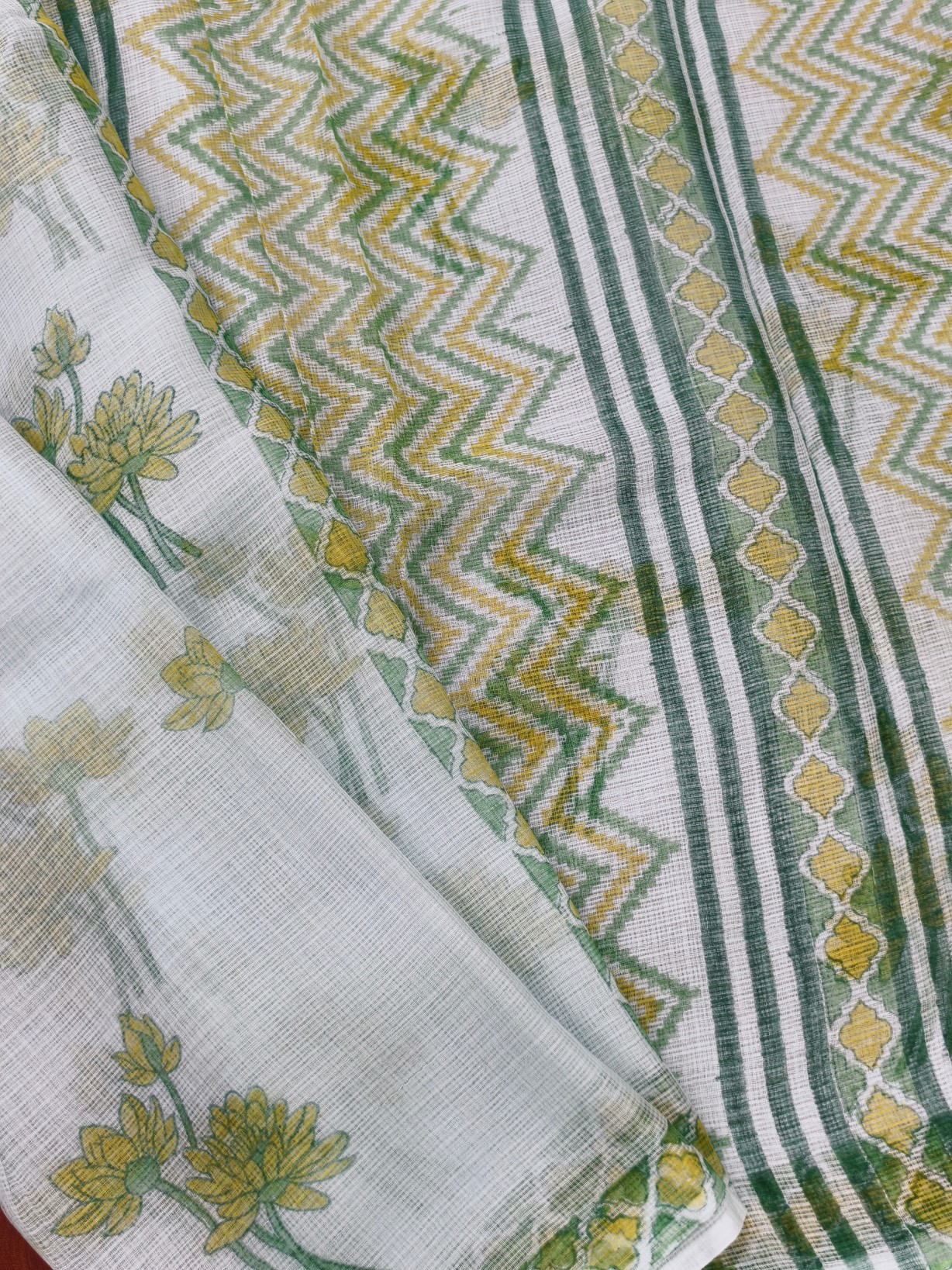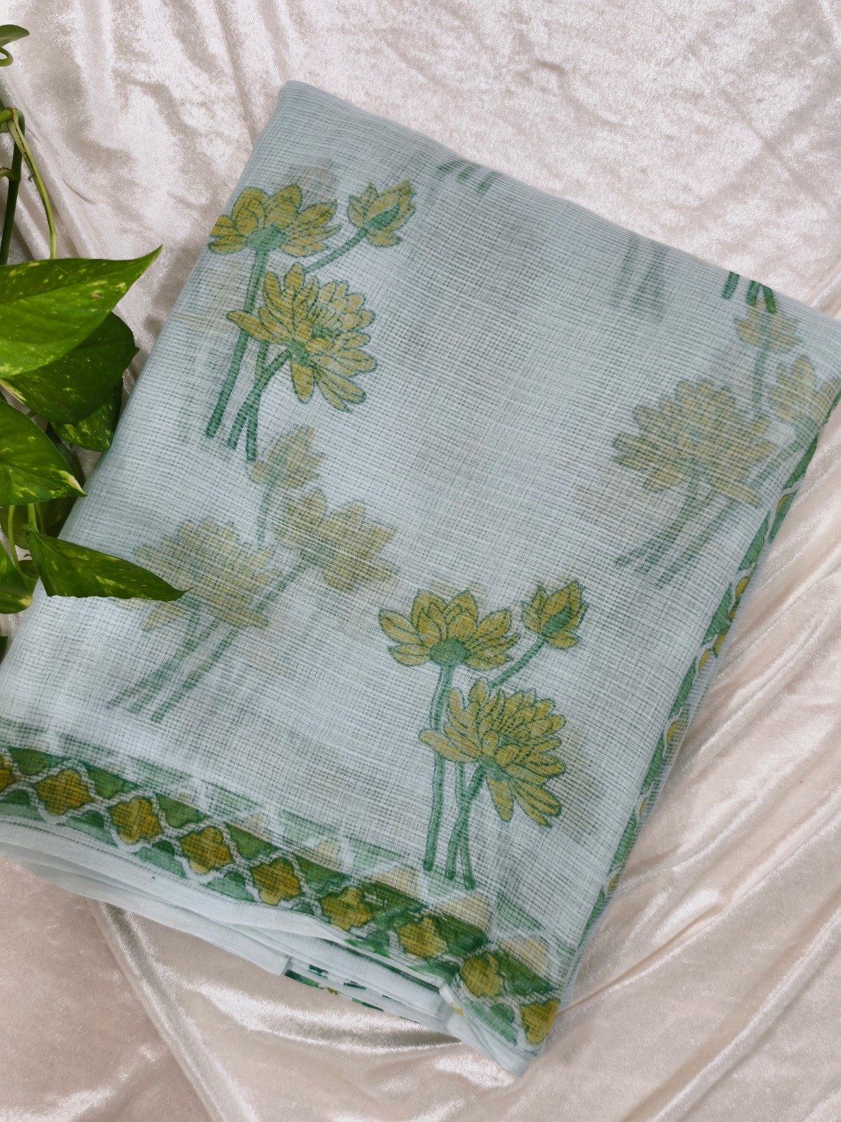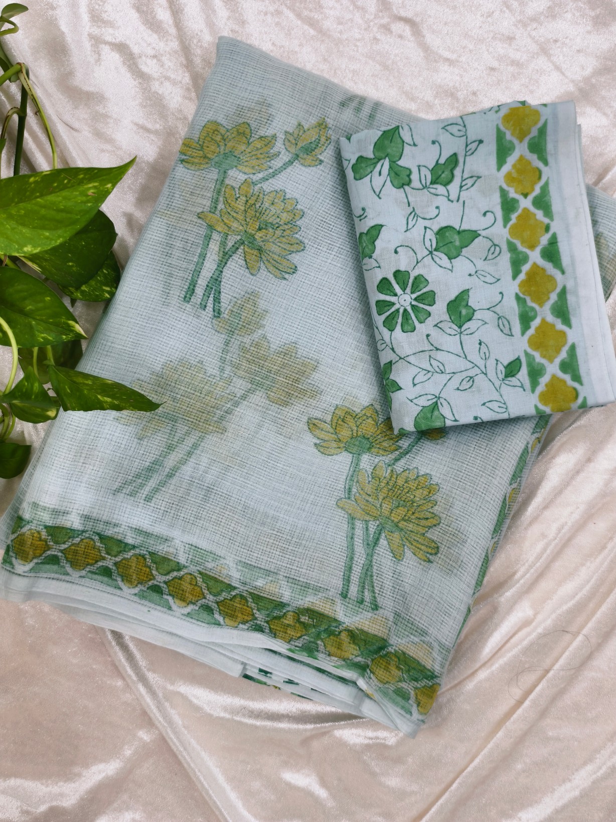 Presenting very beautiful Handblock printed Cotton Kota Saree.  This saree is with blouse piece.