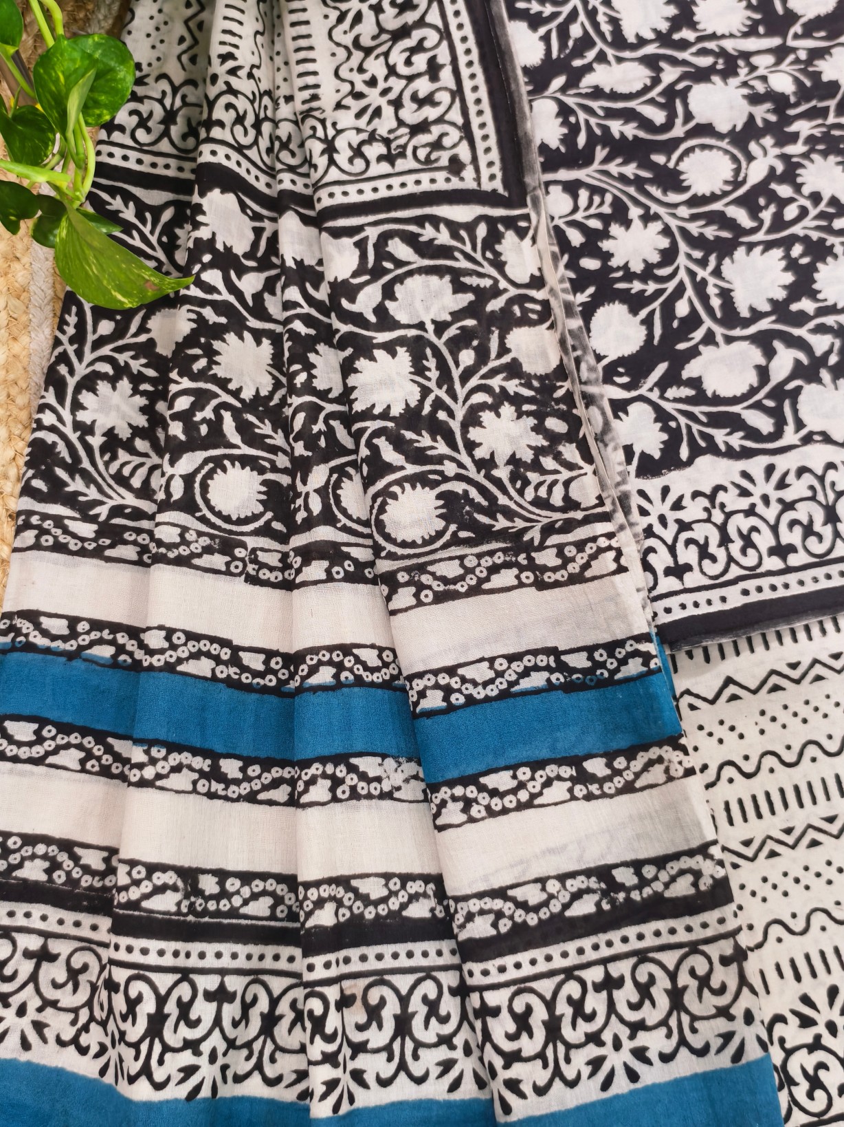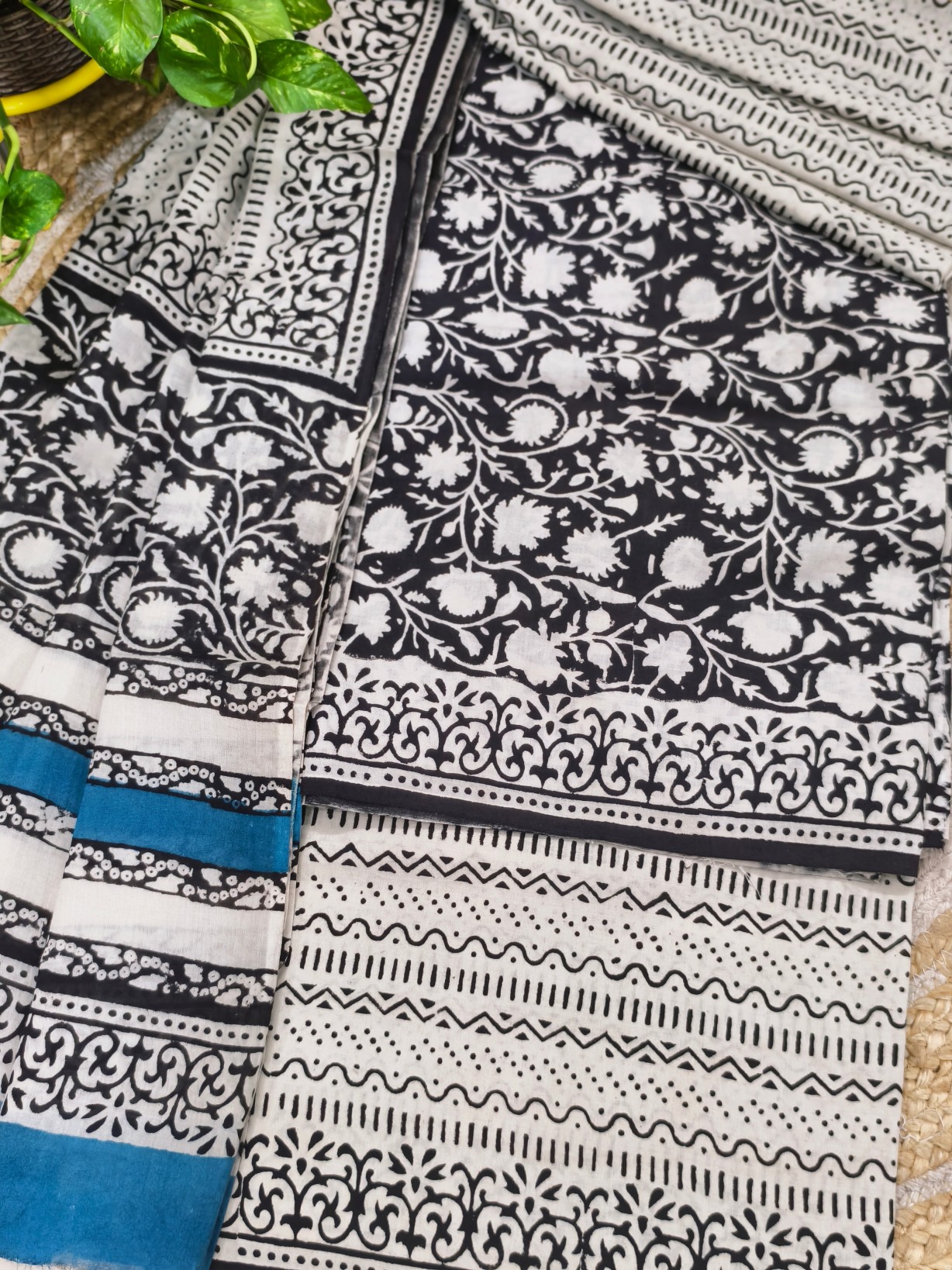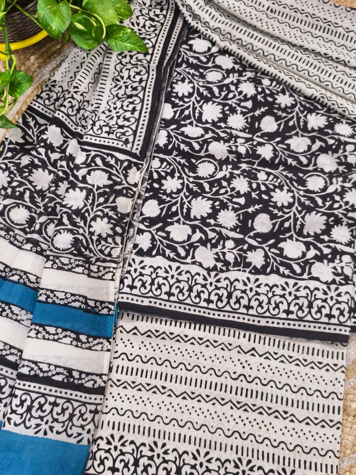 Handblock Printed Cotton Top with Block print bottom & dupatta