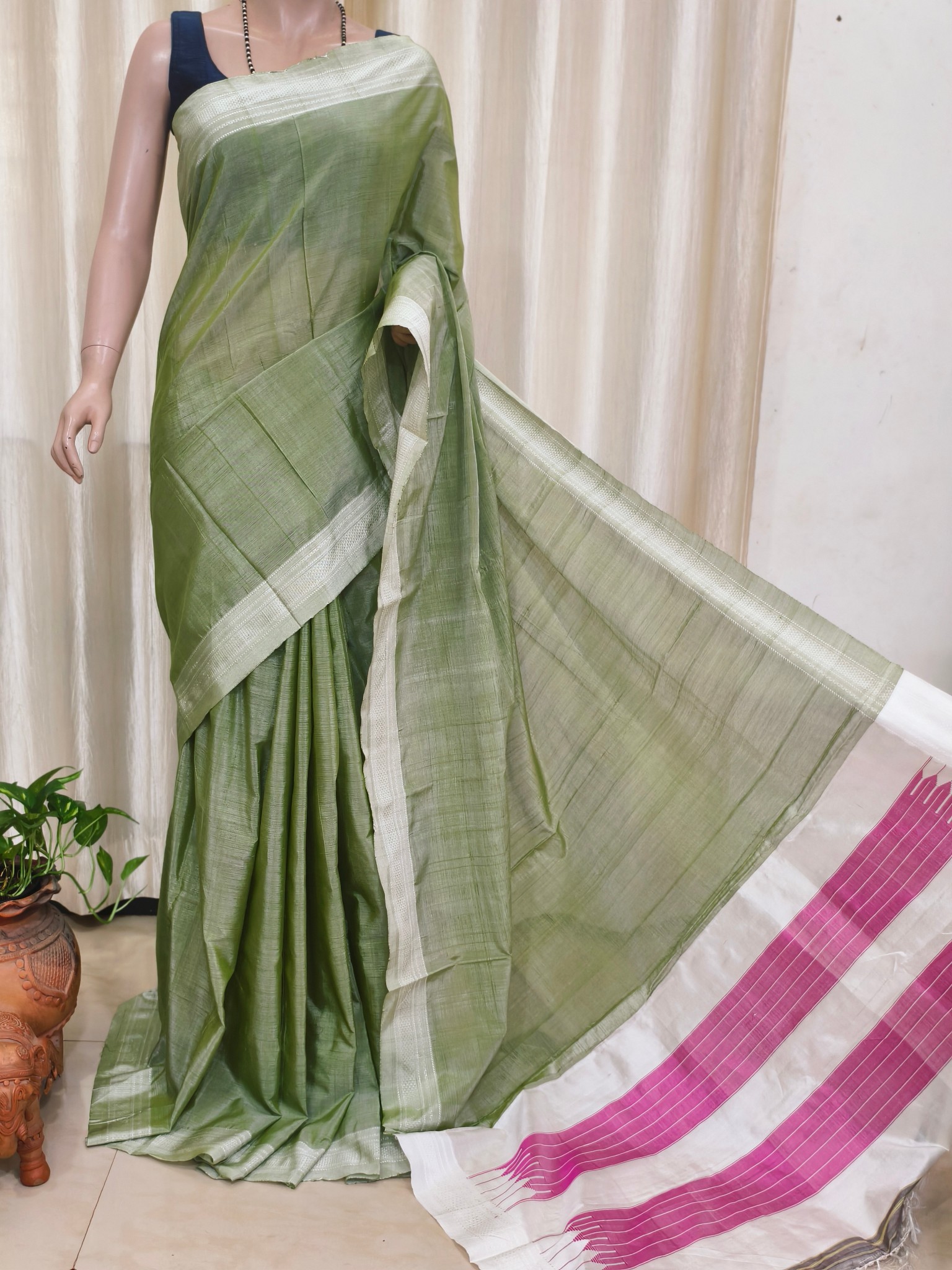 Handloom Ilkal Saree with running blouse piece. The entire saree is of Cotton Silk with a resham pallu. This saree  too good for a formal look or for function wear with traditional accessories