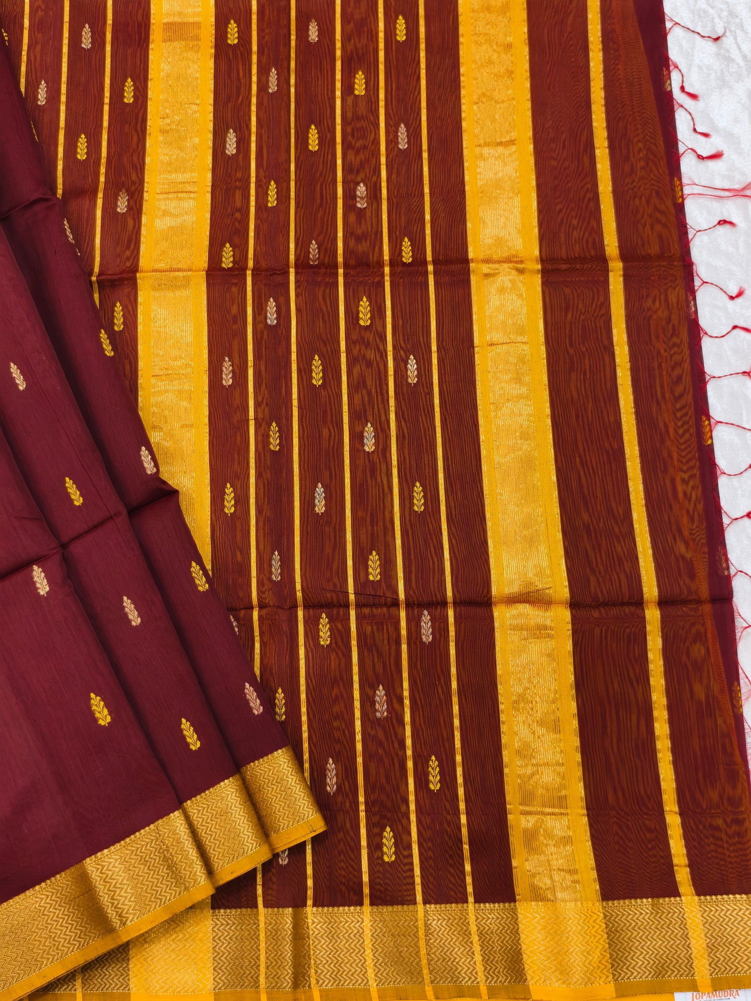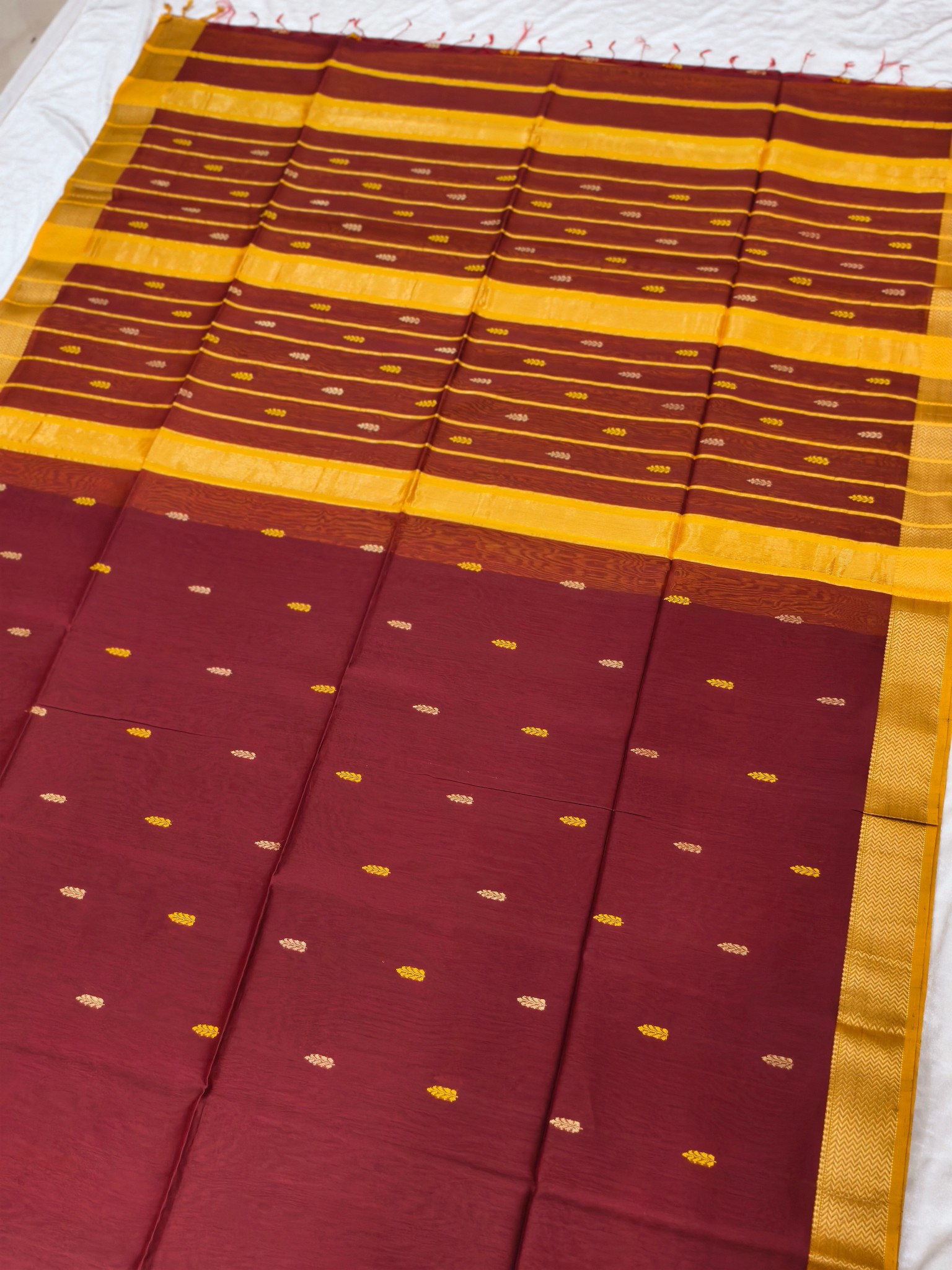 A Handloom silk Cotton Maheshwari Saree with Blouse Piece.