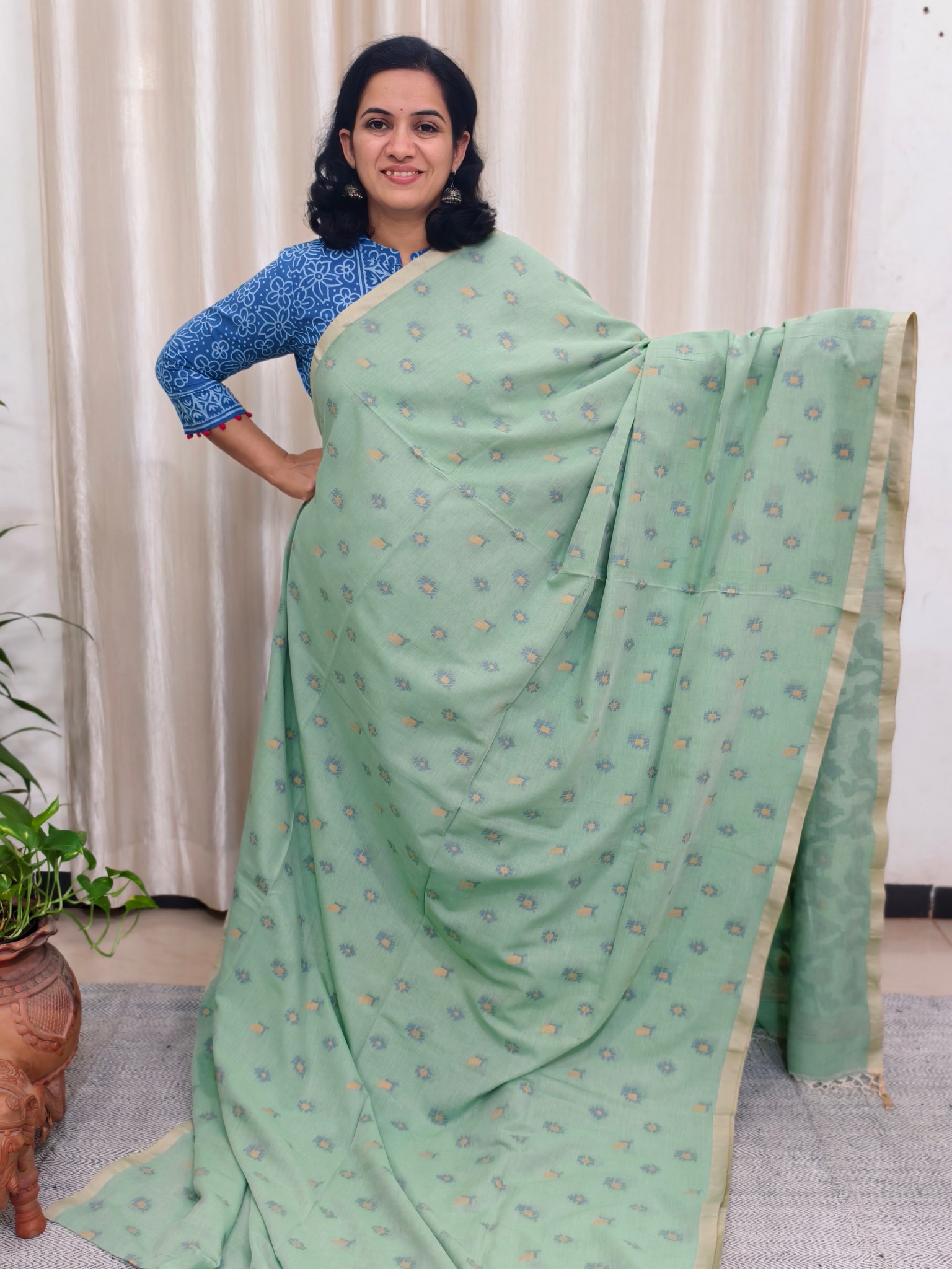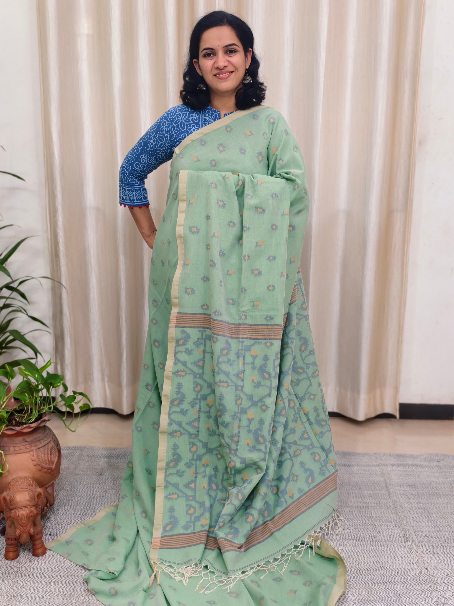Saree : Khadi Cotton Jamdani Saree.