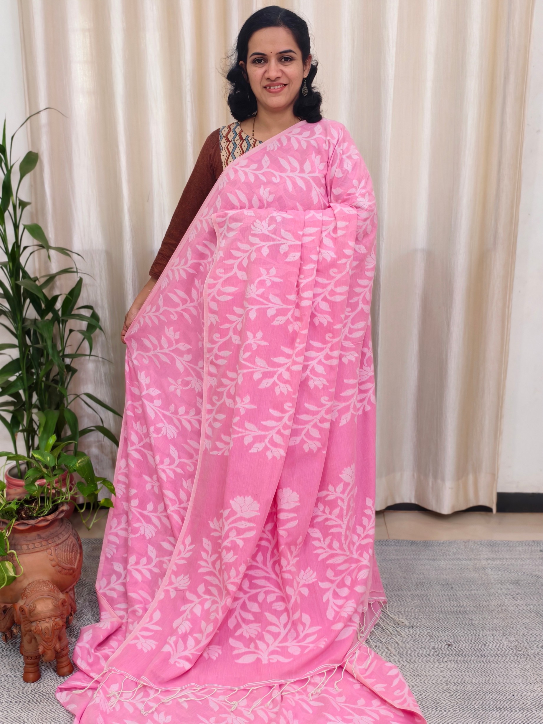 Saree : Khadi Cotton Jamdani Saree.