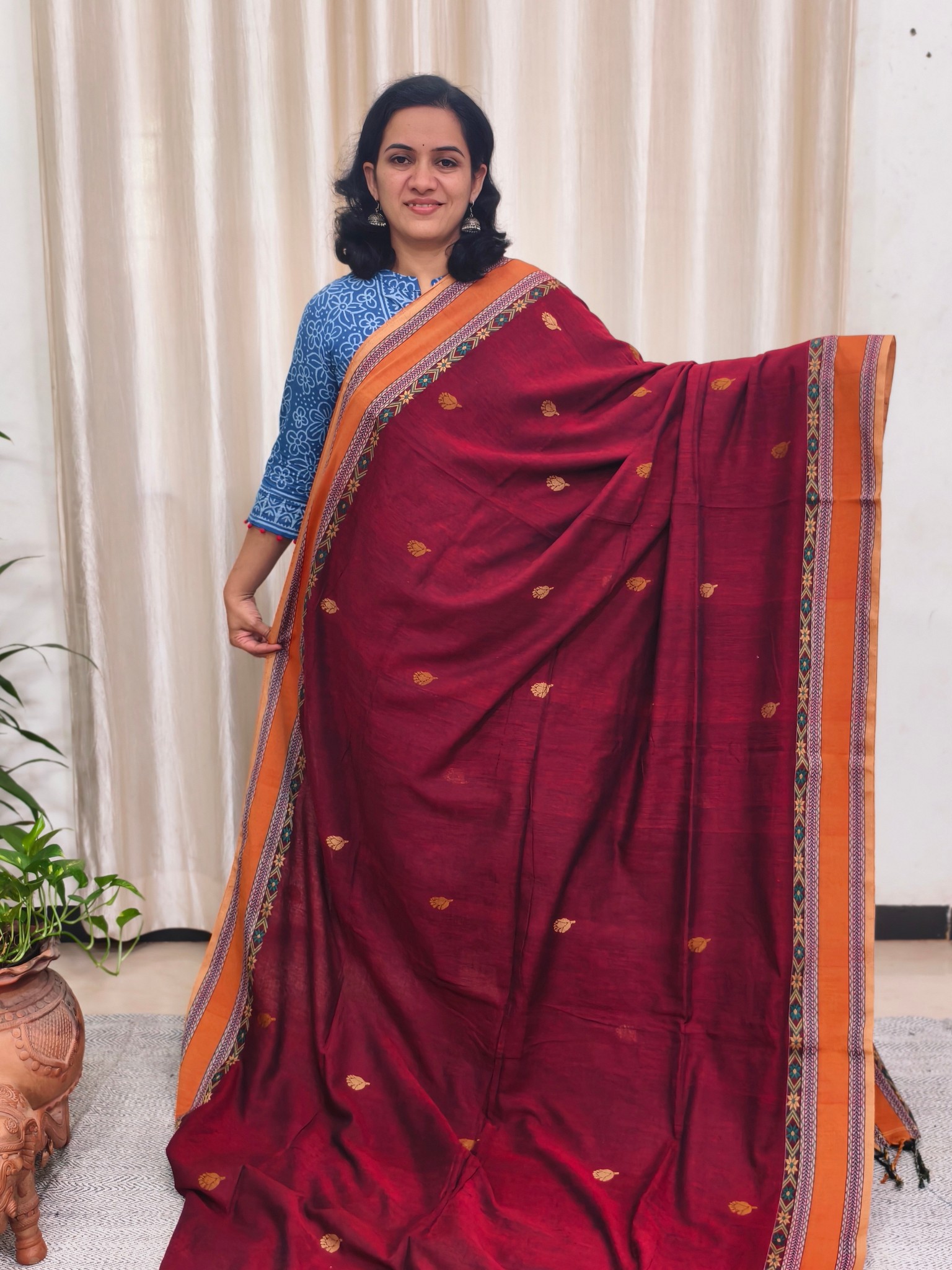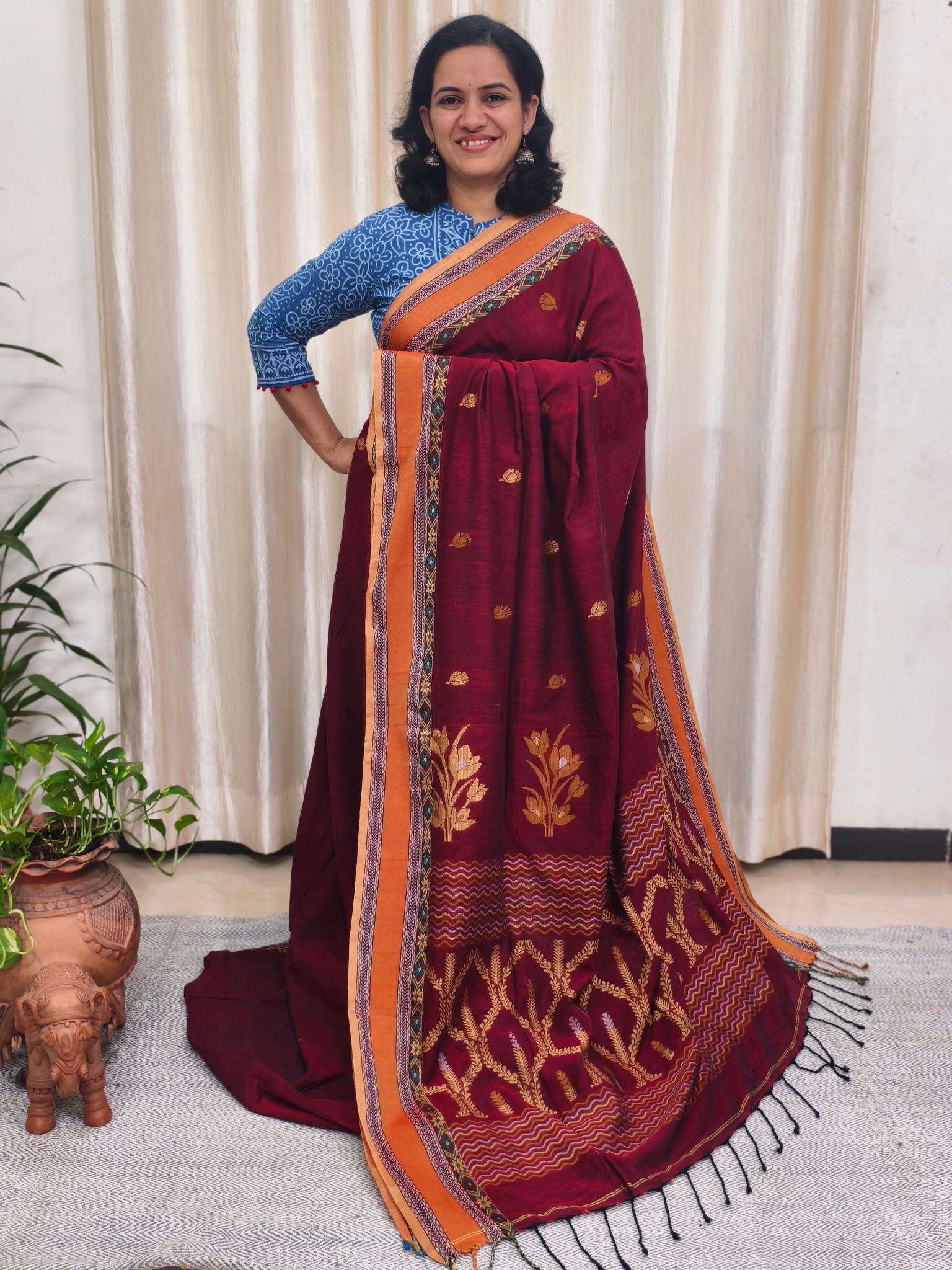 Saree : Khadi Cotton Jamdani Saree.