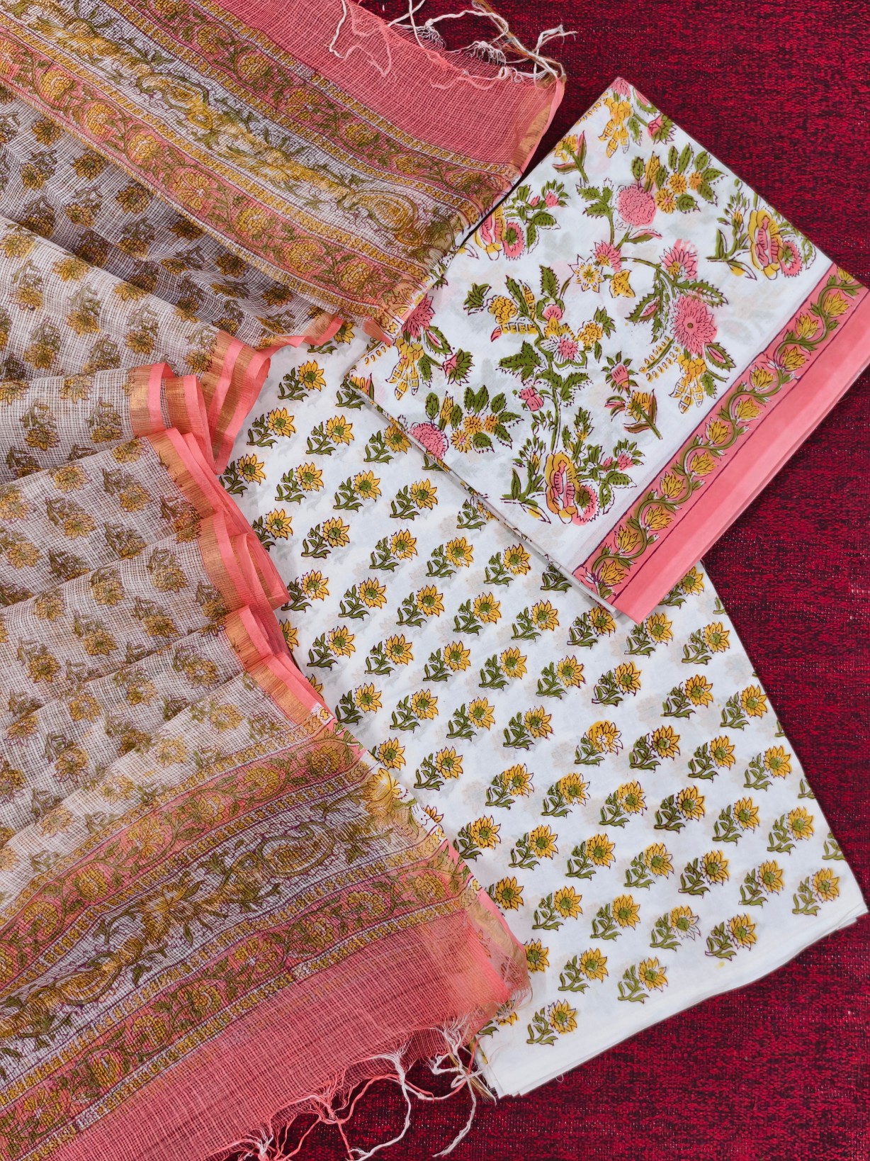 Handblock Printed Cotton Top with Block print bottom & dupatta