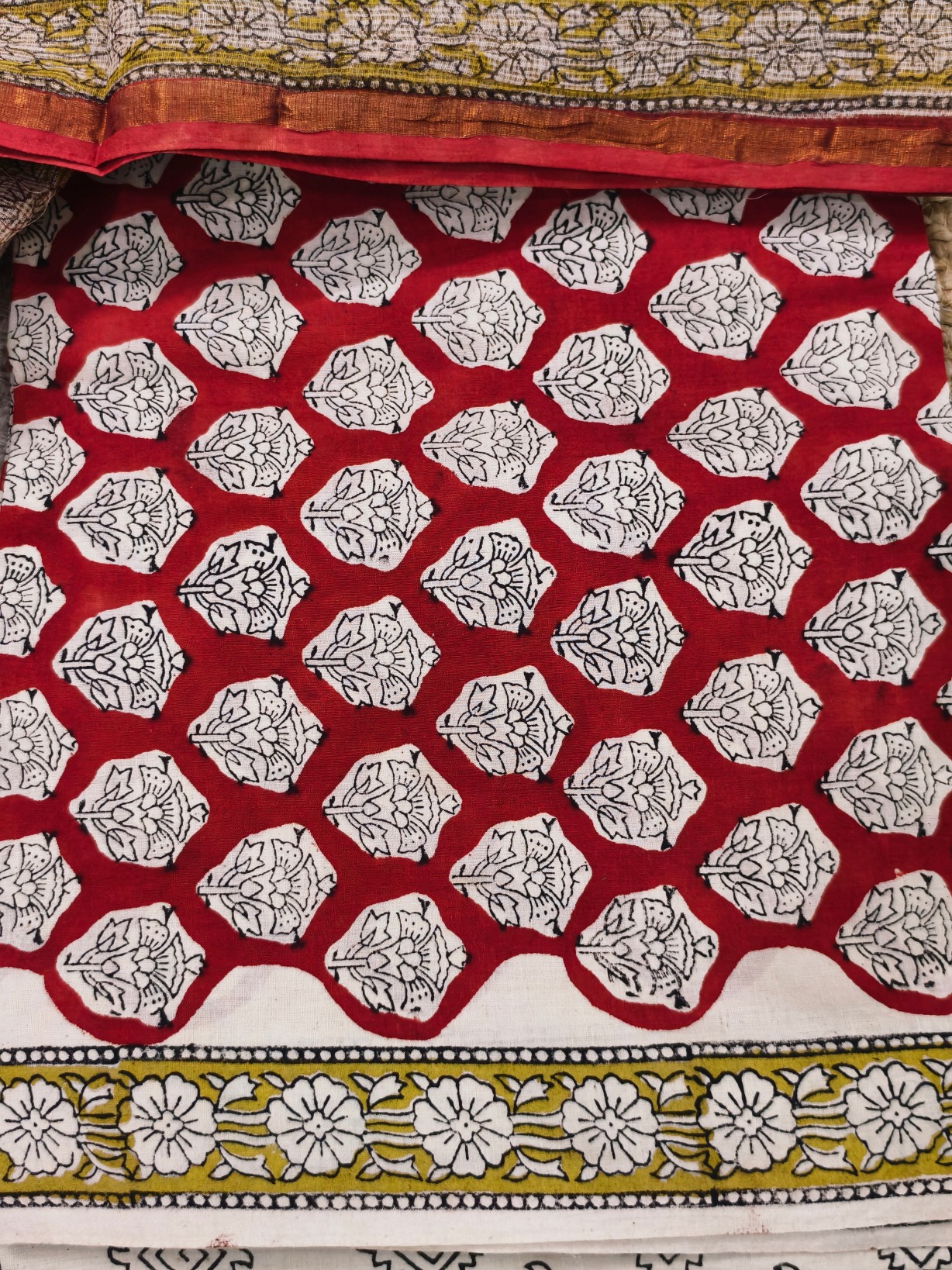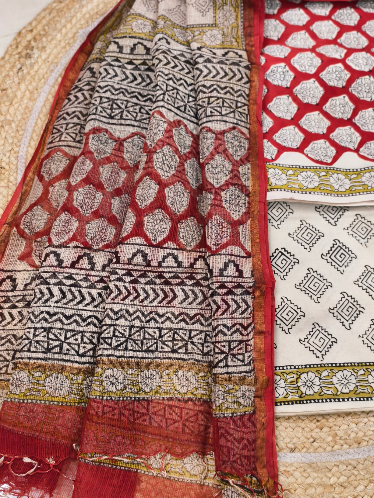 Handblock Printed Cotton Top with Block print bottom & dupatta