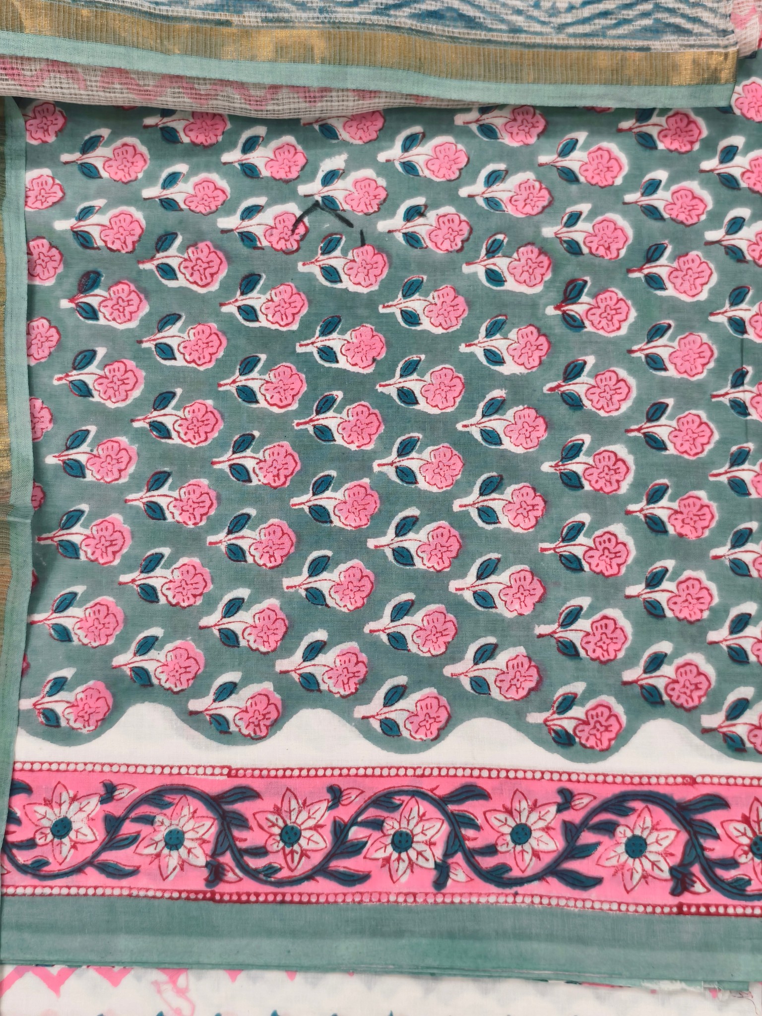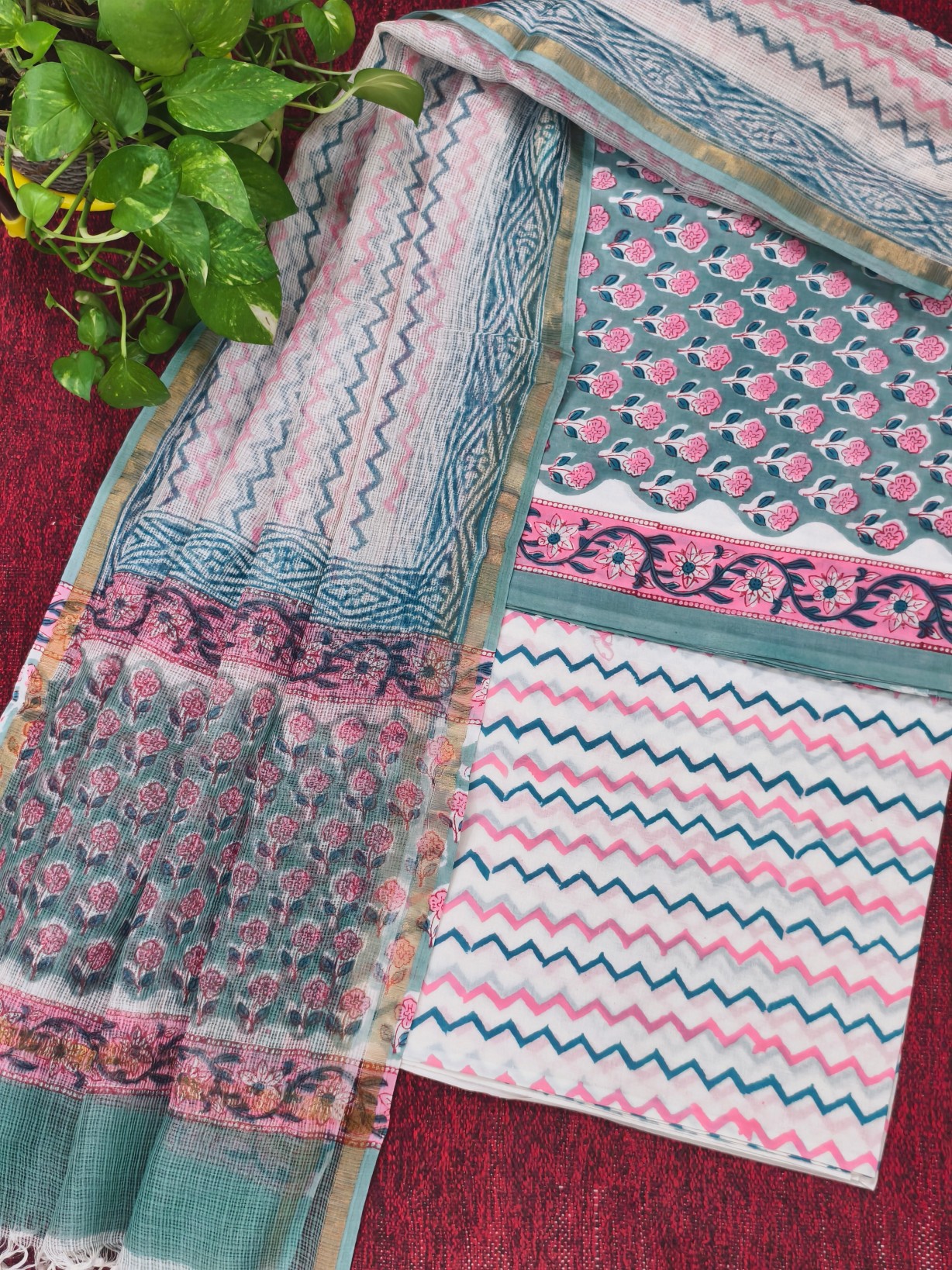 Handblock Printed Cotton Top with Block print bottom & dupatta