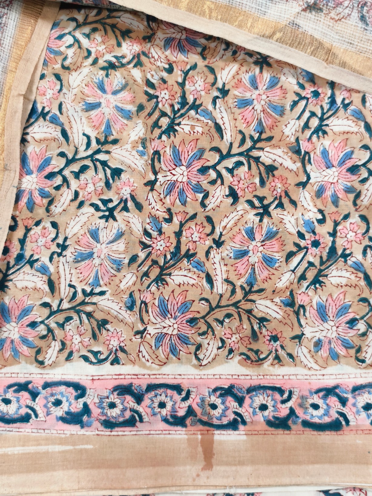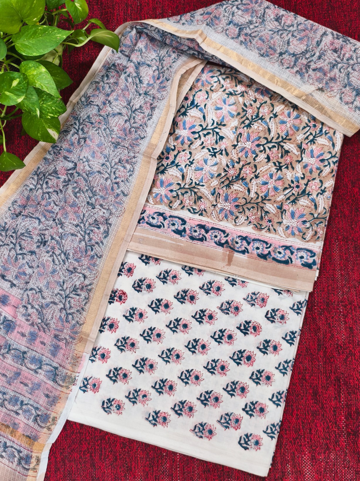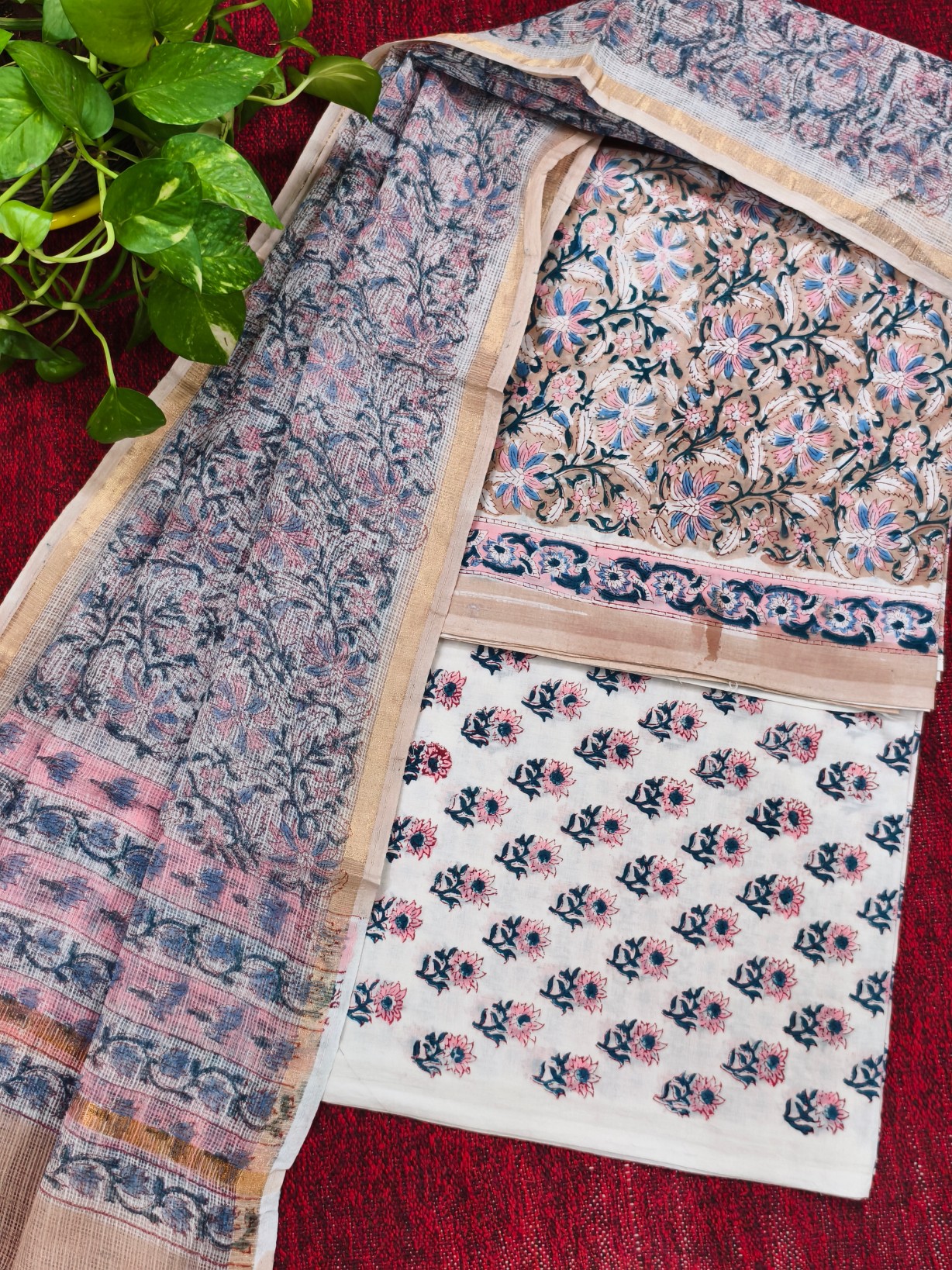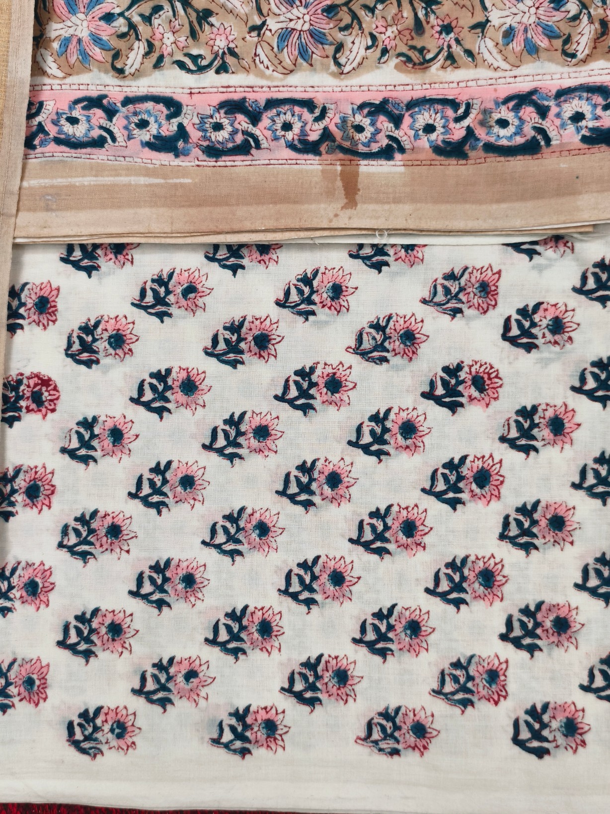 Handblock Printed Cotton Top with Block print bottom & dupatta