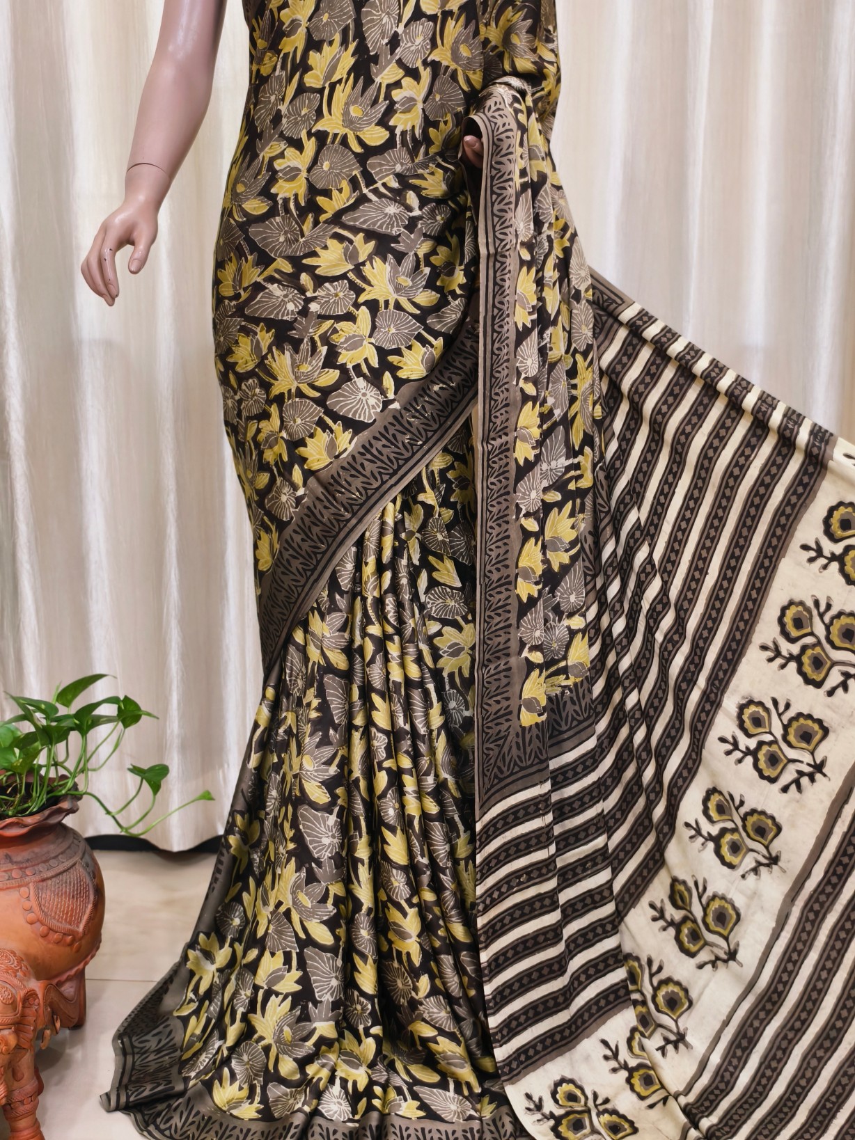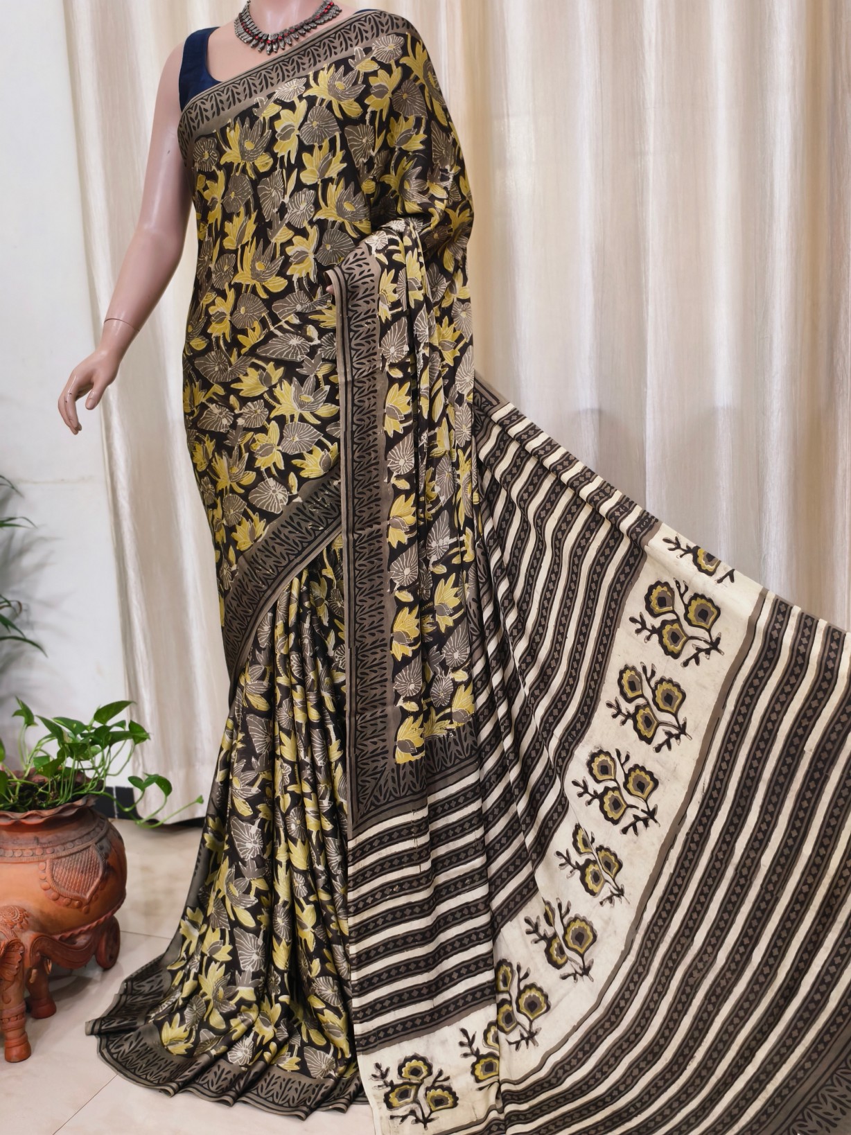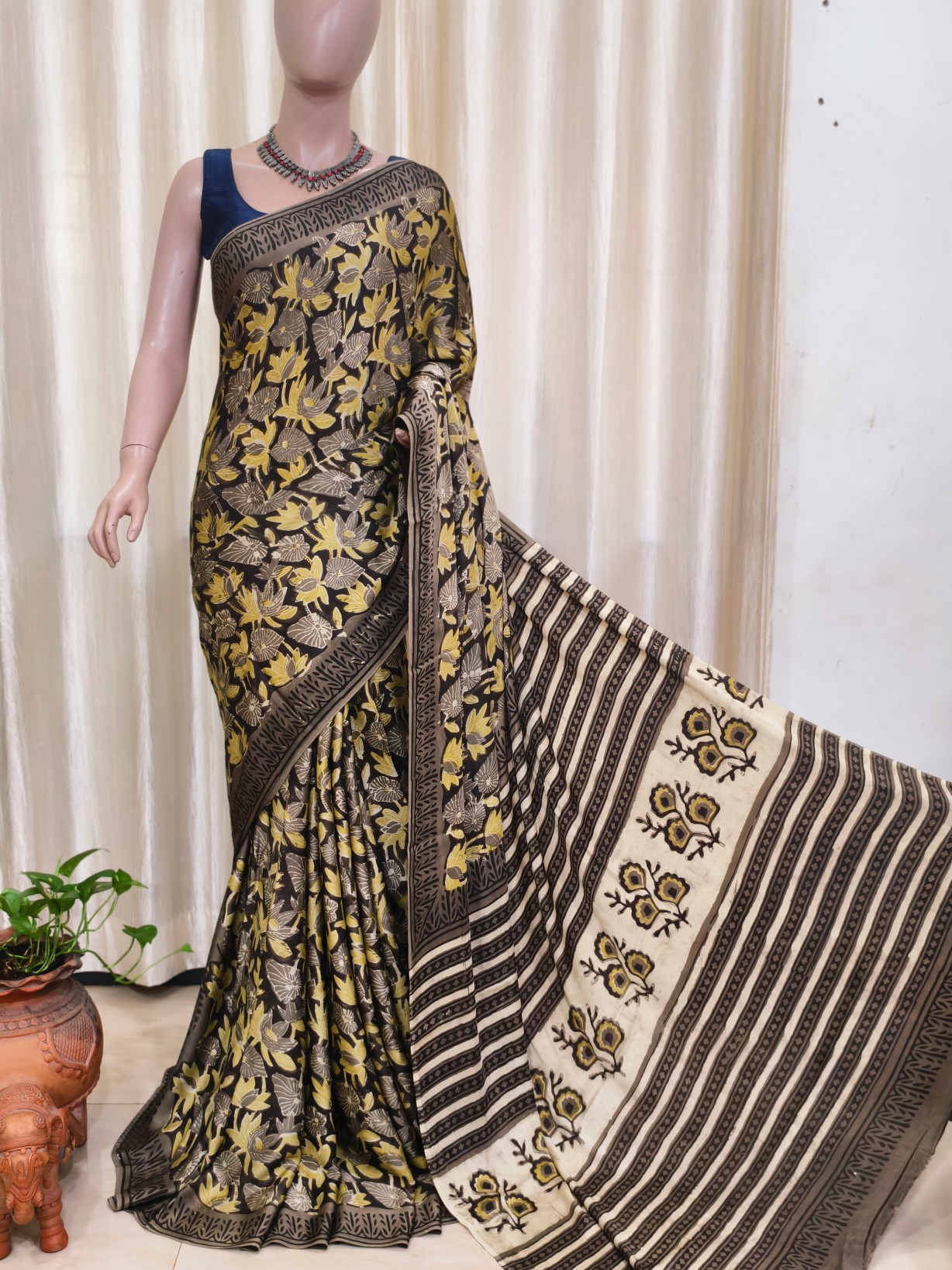 Presenting very beautiful Ajrakh Handblock printed Modal Silk Saree .  This saree is with blouse piece.