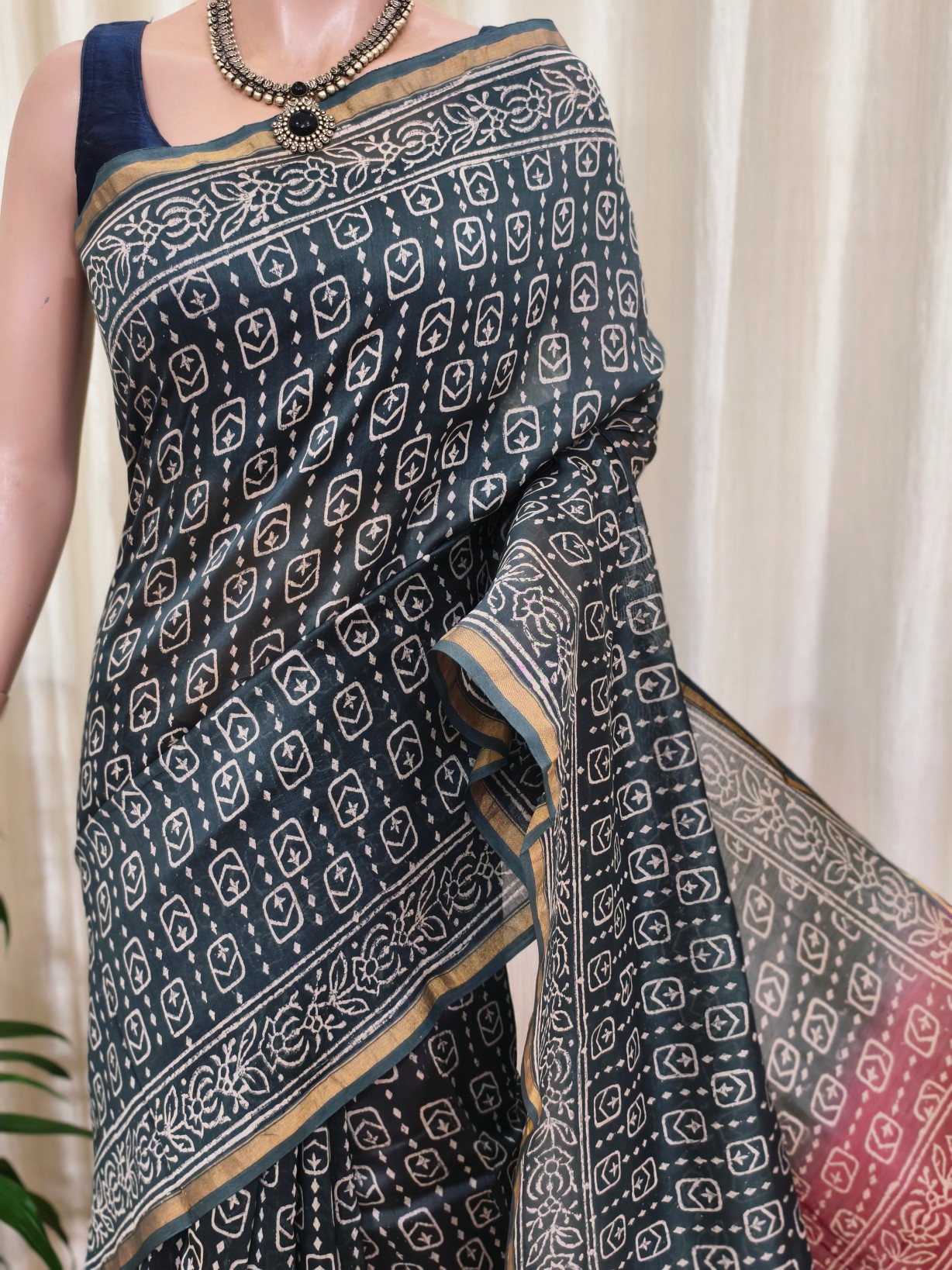 Presenting very beautiful Handblock printed Silk cotton Saree . Also known as Chanderi Saree.  These saree is with blouse piece.