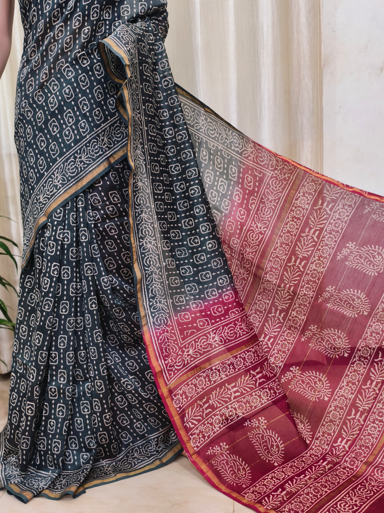 Fabric & Craft : Handblock Prints Silk Cotton Saree