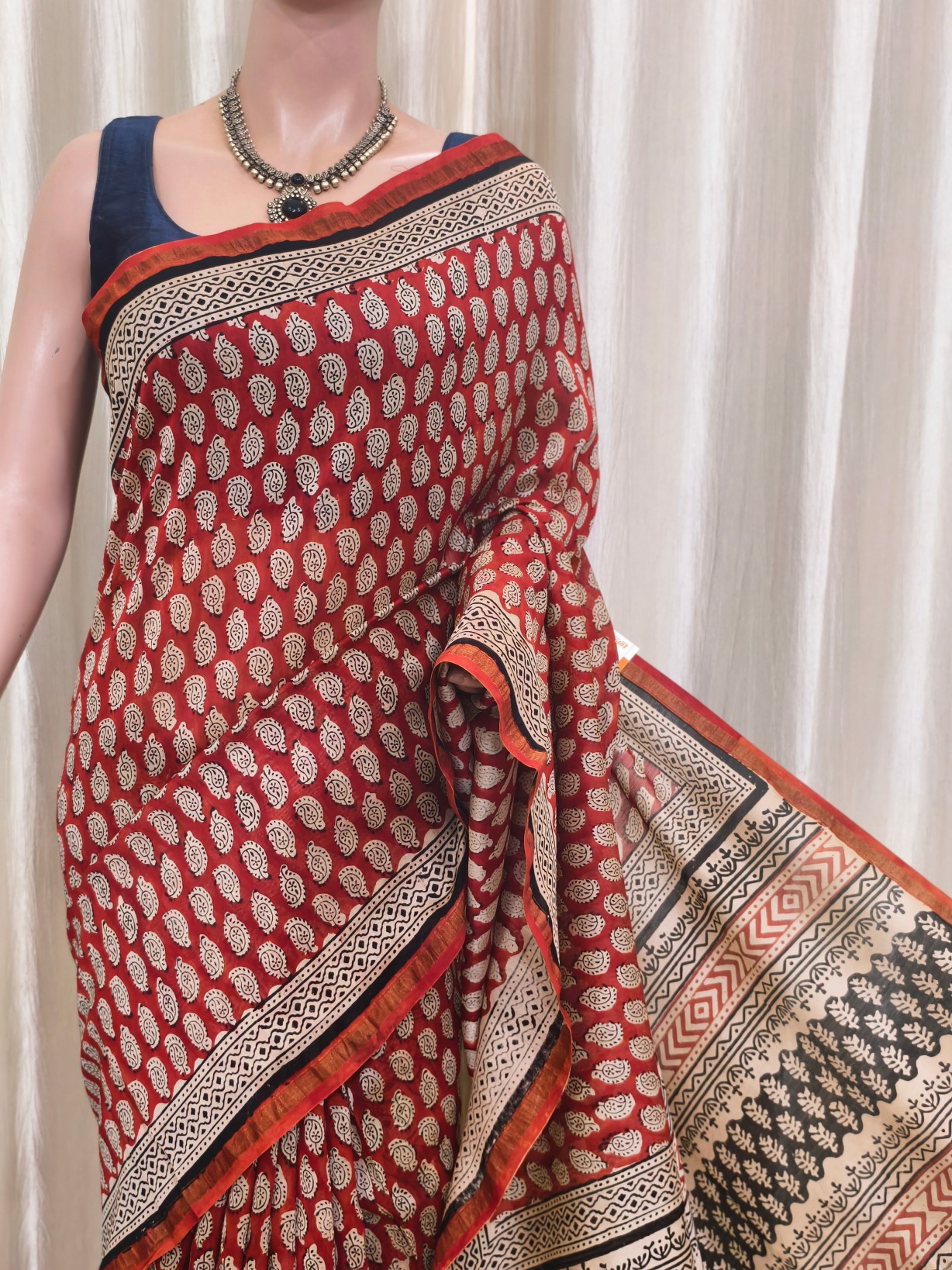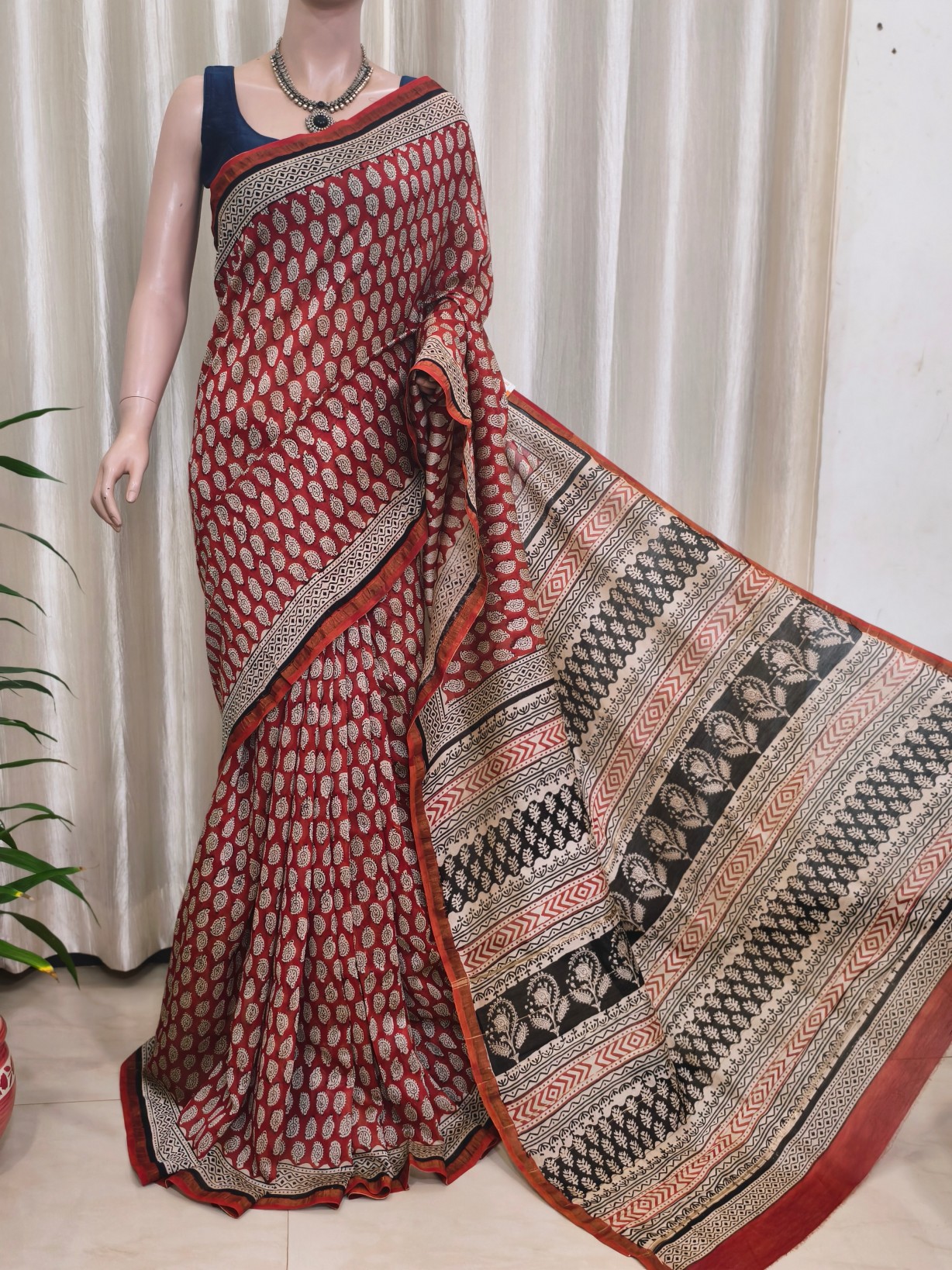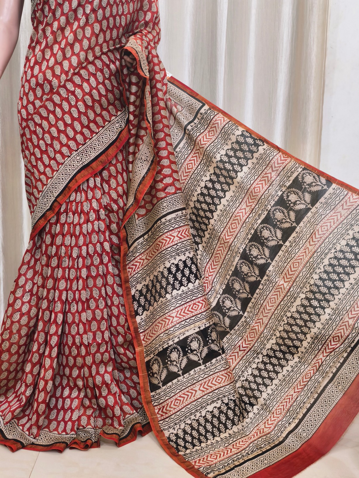 Silk Cotton Handblock Print Chanderi Saree