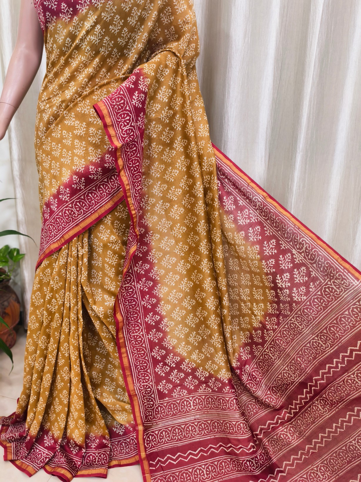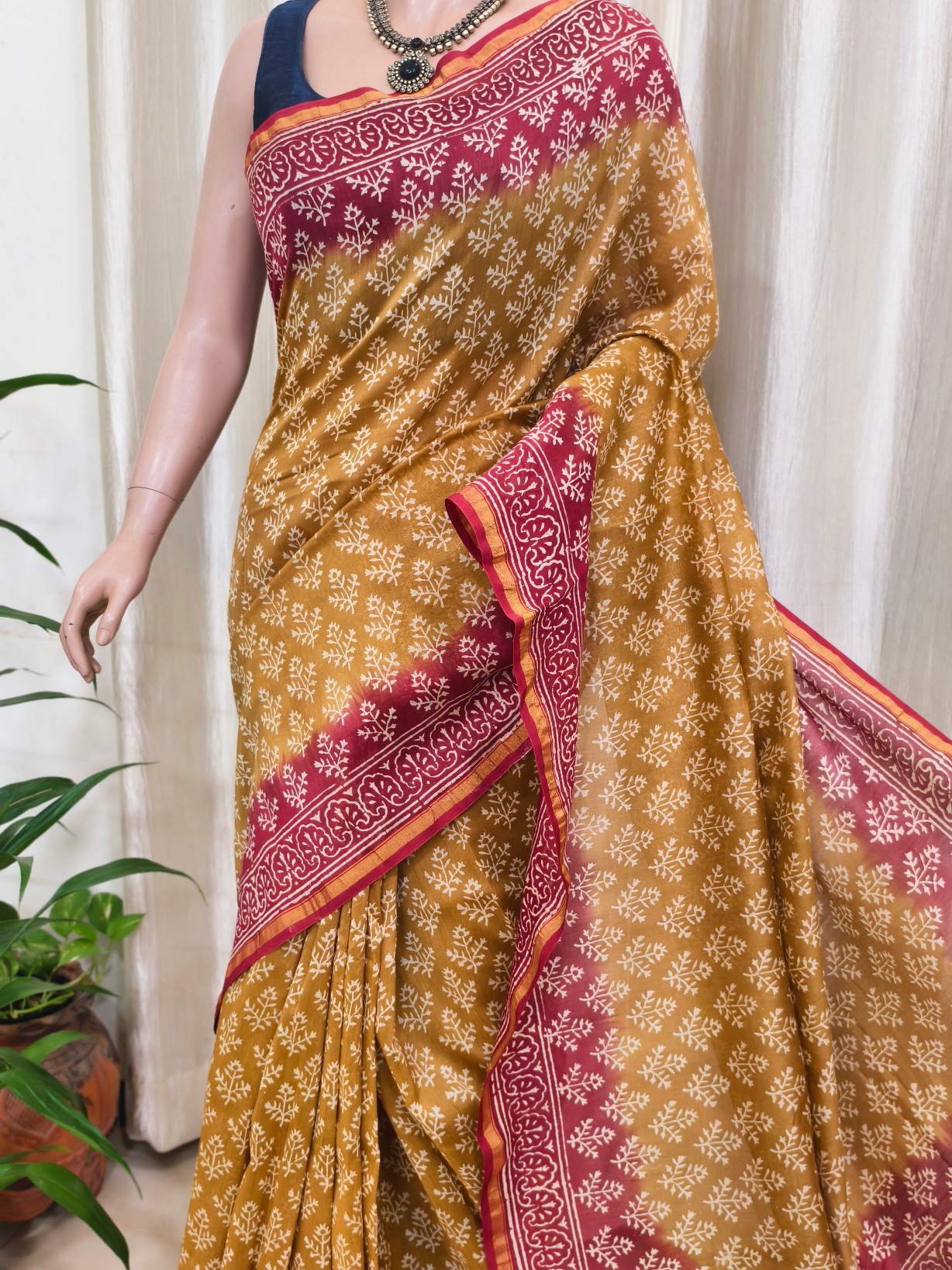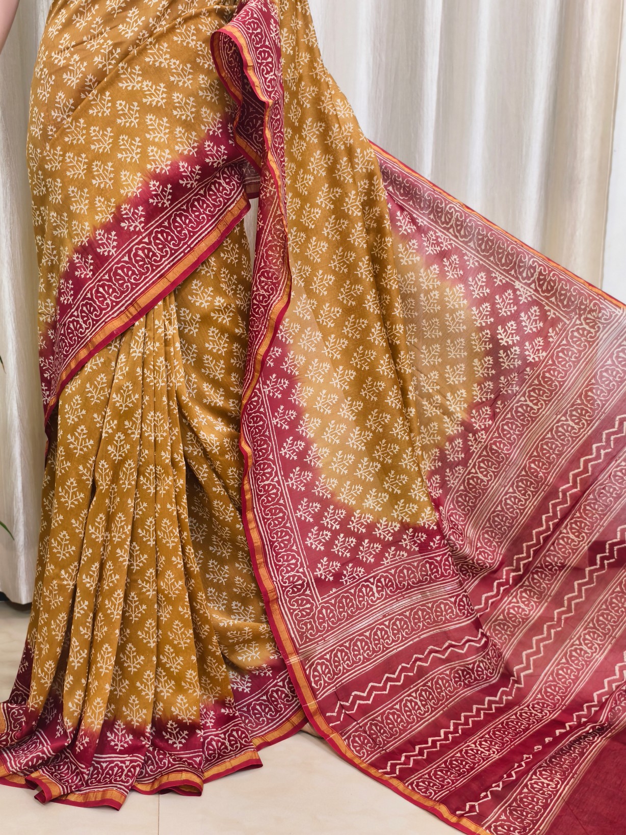 Silk Cotton Handblock Print Chanderi Saree