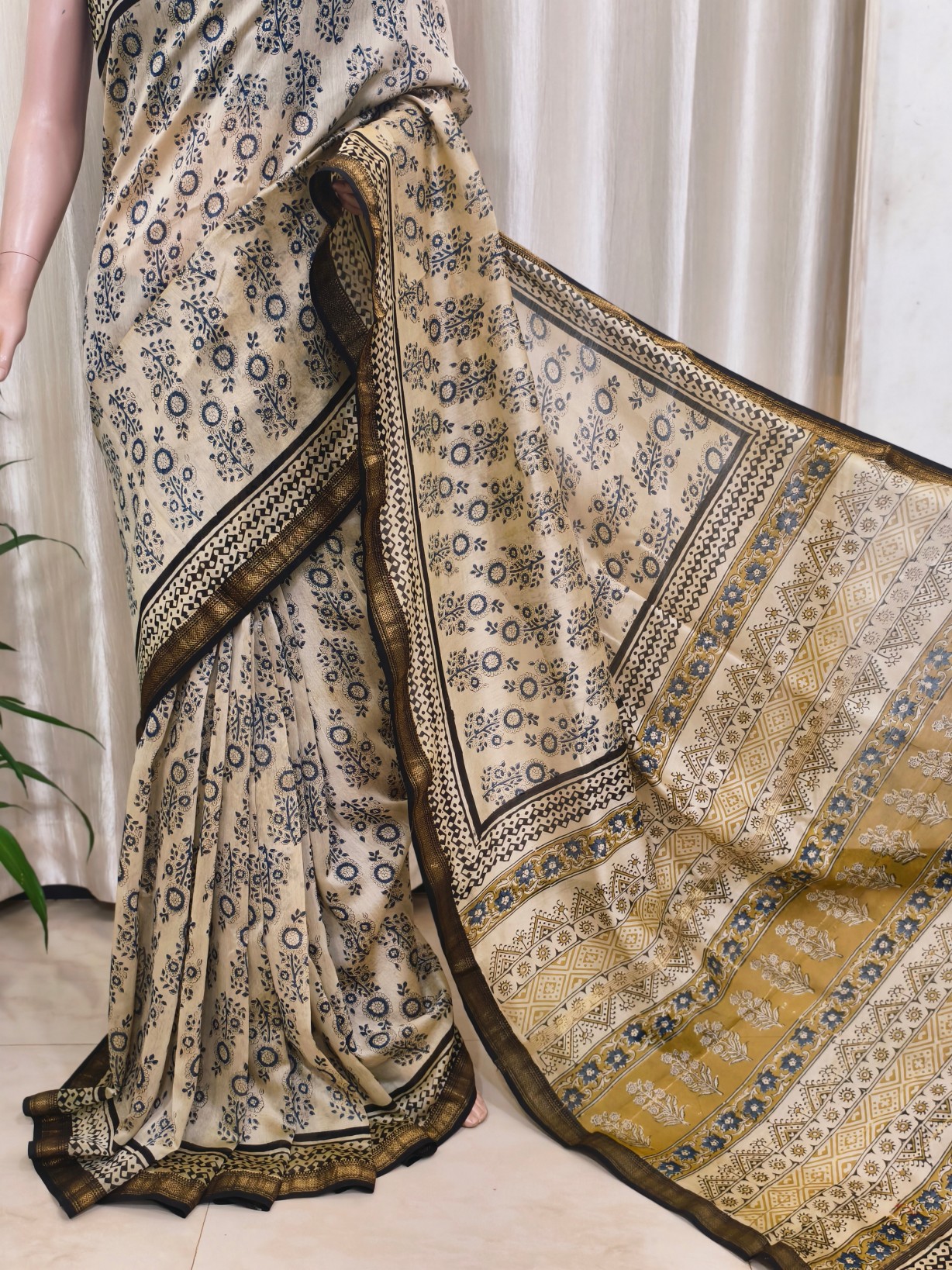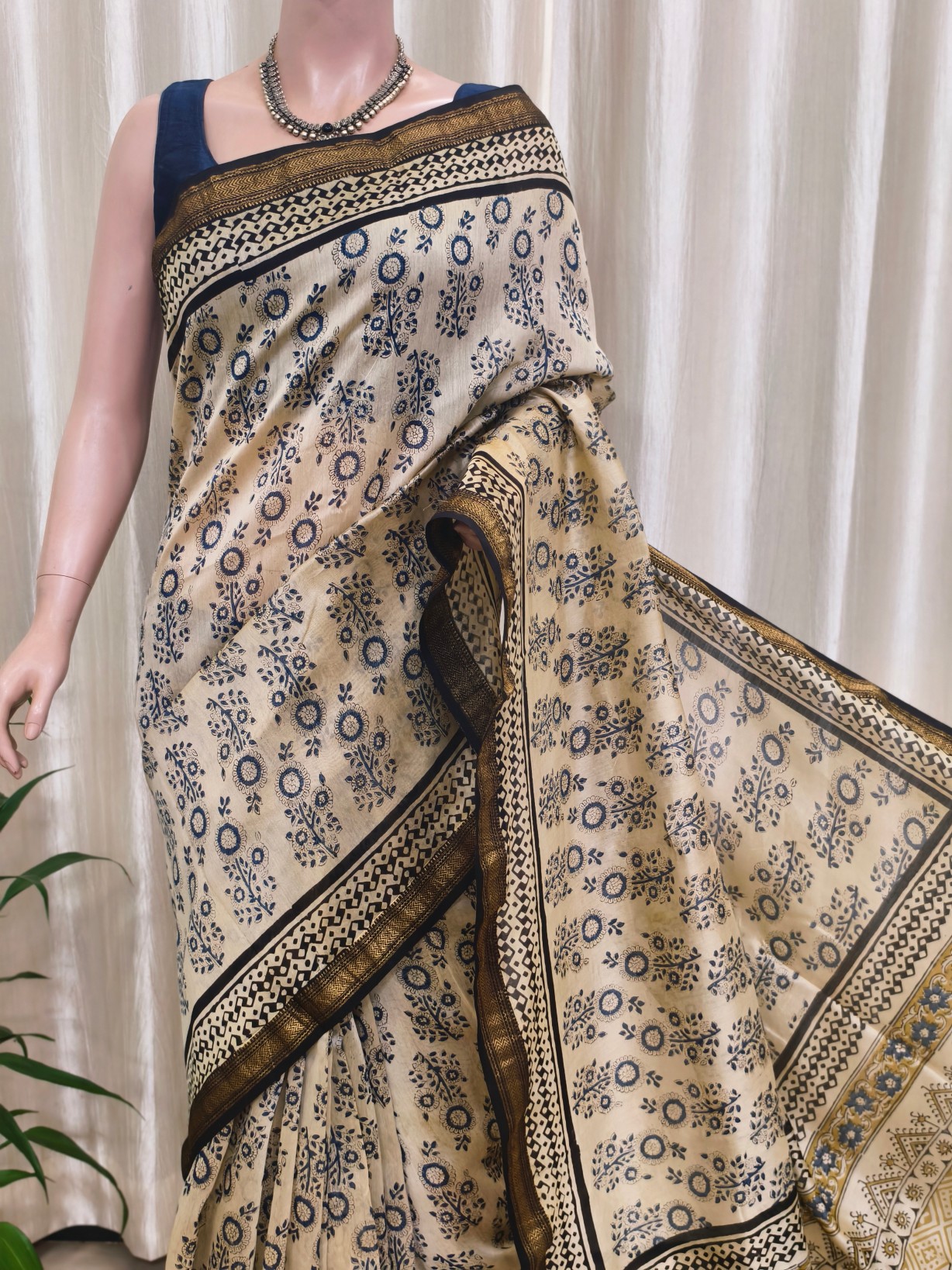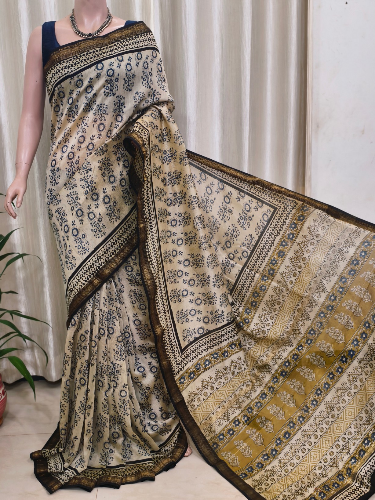 Silk Cotton Handblock Prints Maheshwari Saree